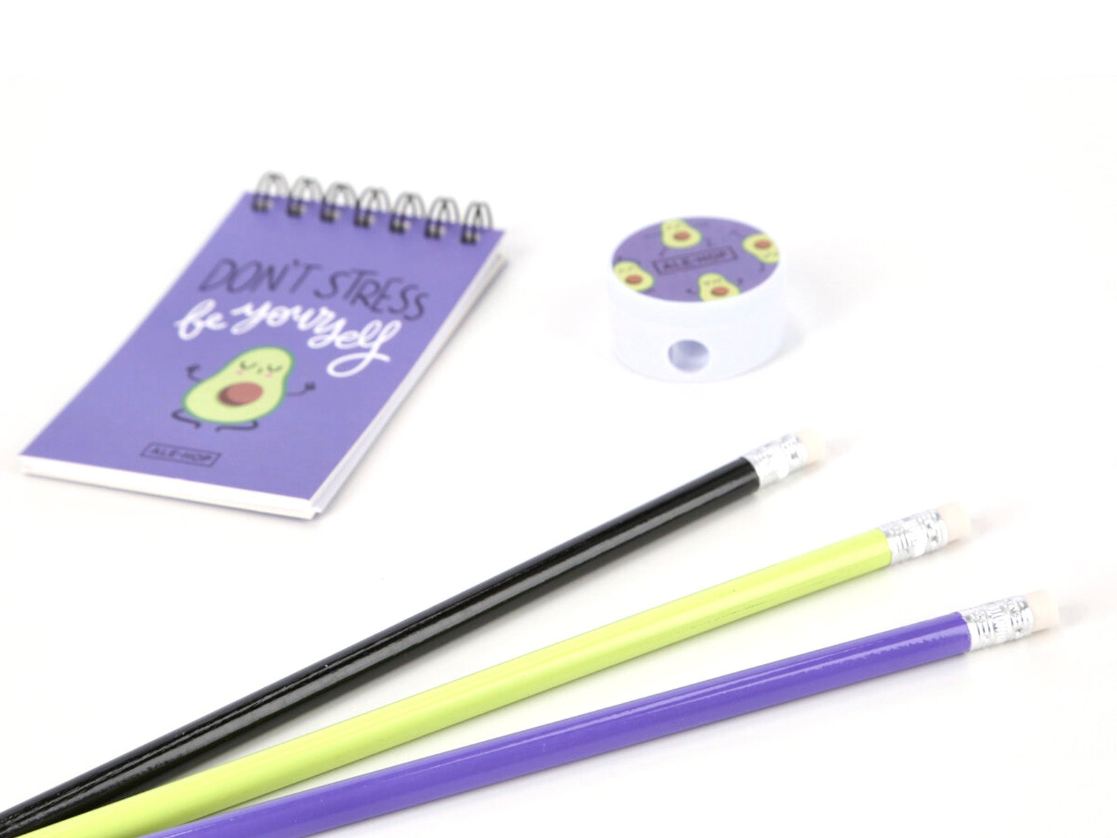 - Pack Mini libreta, sacapuntas y lápices aguacate
