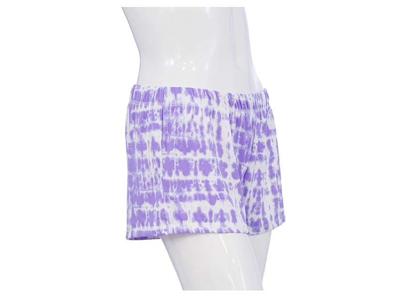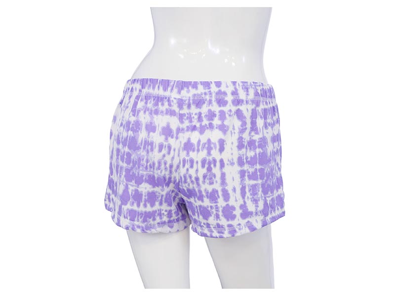 Diseño Tie-Dye en tonalidades de morado y blanco para un look divertido que no renuncia al estilo. Atrévete a ser el centro de atención incluso en pijama.