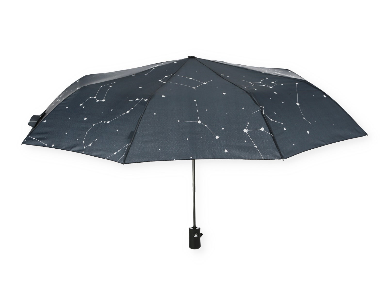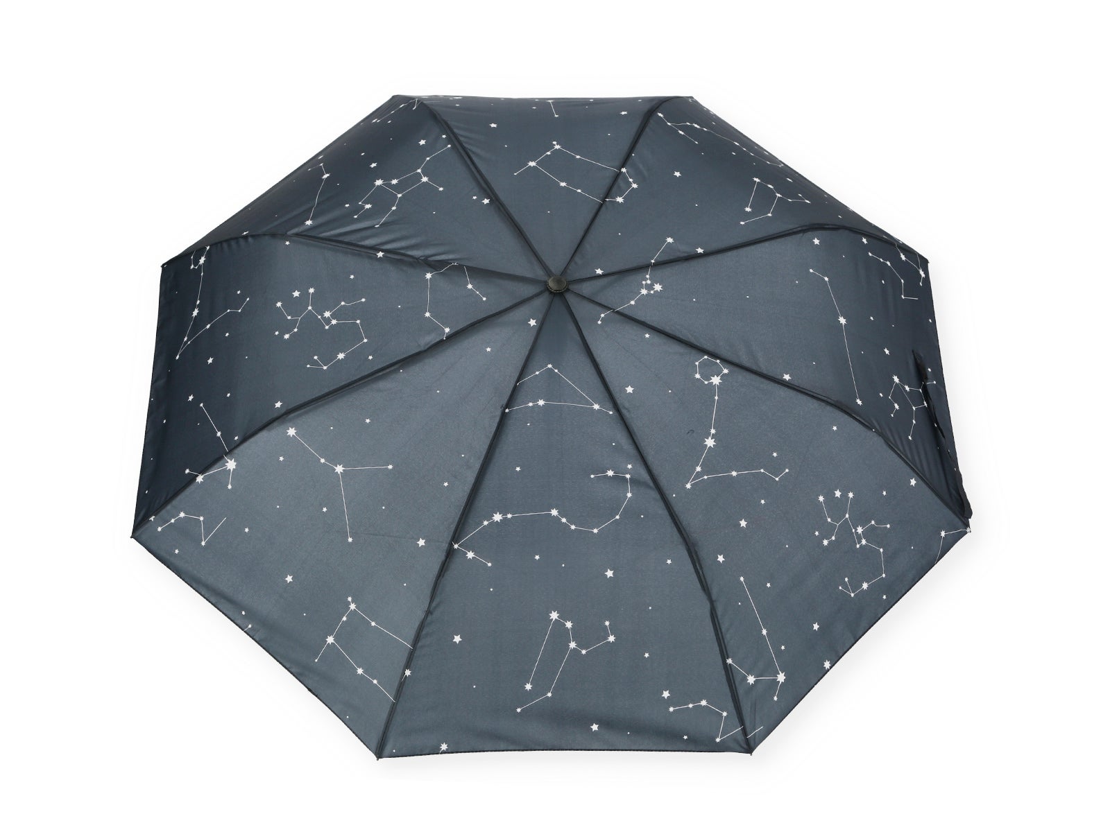 Paraguas plegable de ALE-HOP con estampado de constelaciones, práctico y compacto. Incluye funda a juego y apertura cómoda. Lleva un trozo de cielo contigo en cada paseo lluvioso.