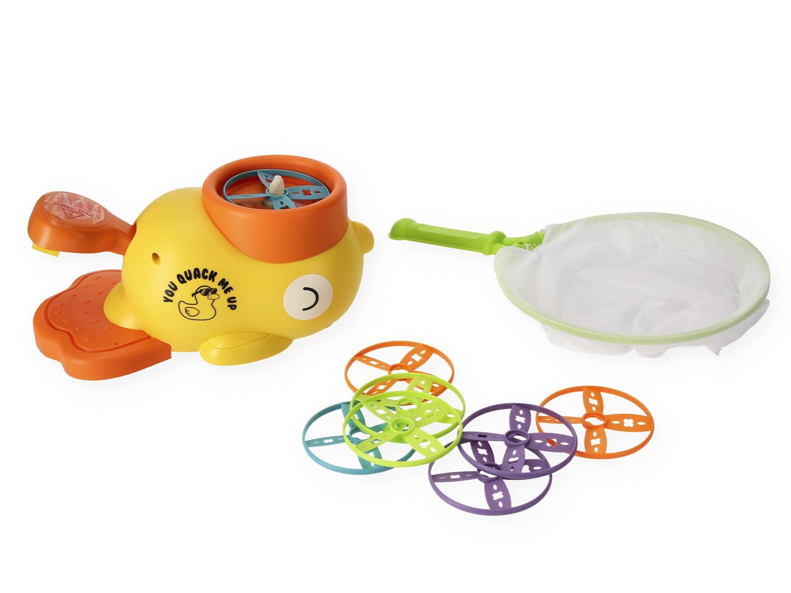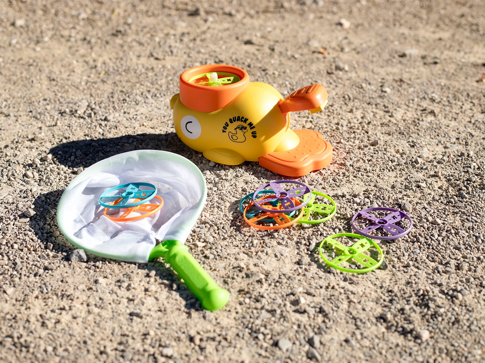 Prepárate para misiones de vuelo épicas con el Pato lanzador de discos. Este divertido juguete con forma de pato está diseñado para convertir cualquier espacio exterior en un campo de juegos dinámico. El funcionamiento es pura magia: ¡solo tienes que pisar el pedal y ver cómo los discos salen volando! Con el espíritu original de ALE-HOP, este set incluye una red de captura para que el juego se convierta en un emocionante reto de habilidad.