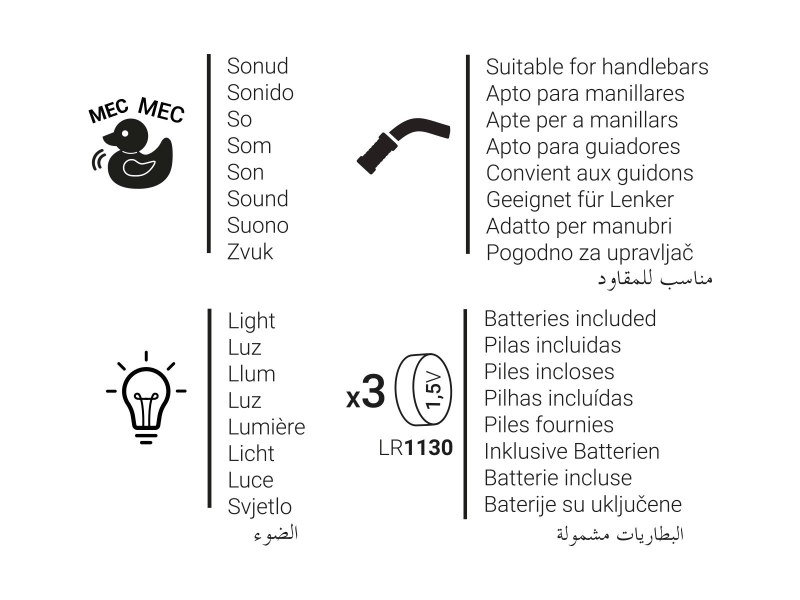 - Accesorio seguro y divertido: con luz led incorporada para iluminar el camino y sonido para avisar a todos de tu presencia.