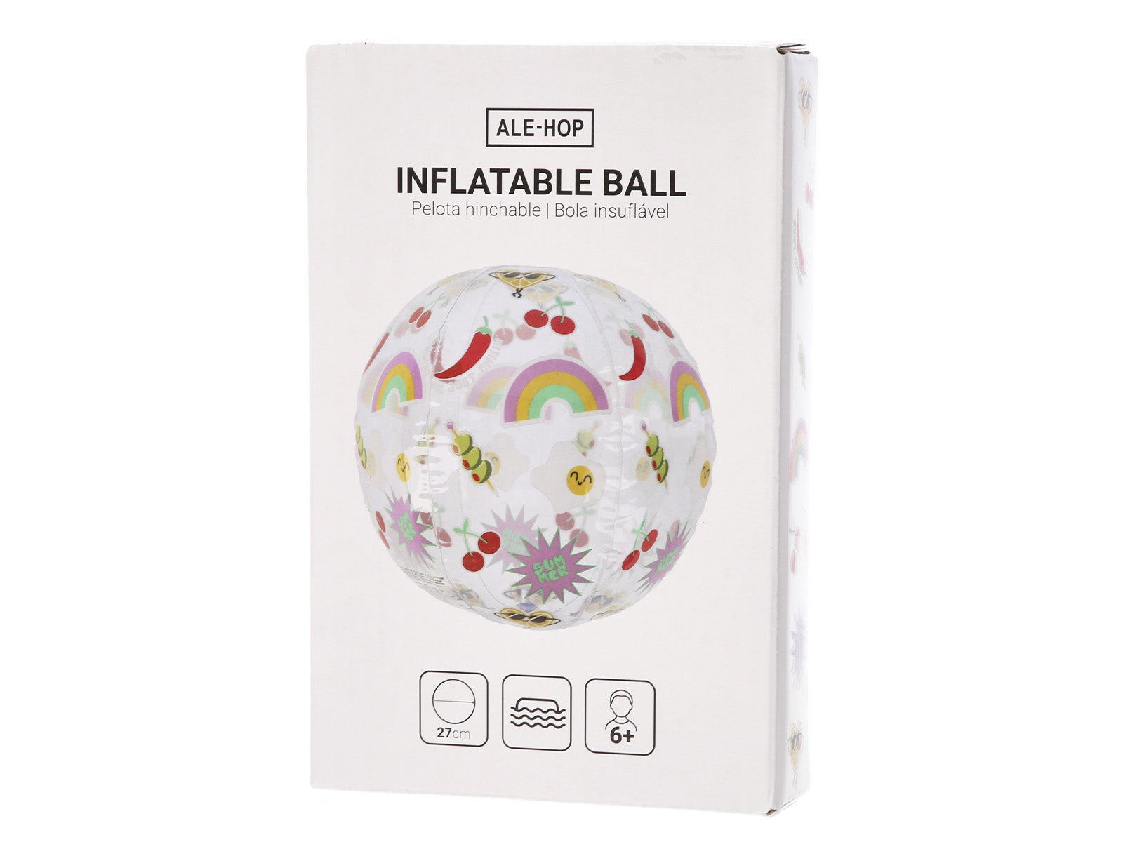¡Diversión y buen rollo en cada rebote! La Pelota hinchable - Just chilin' de ALE-HOP es ligera, resistente y tiene el diseño más "cool" del verano. El accesorio imprescindible para tus mejores momentos en el agua.