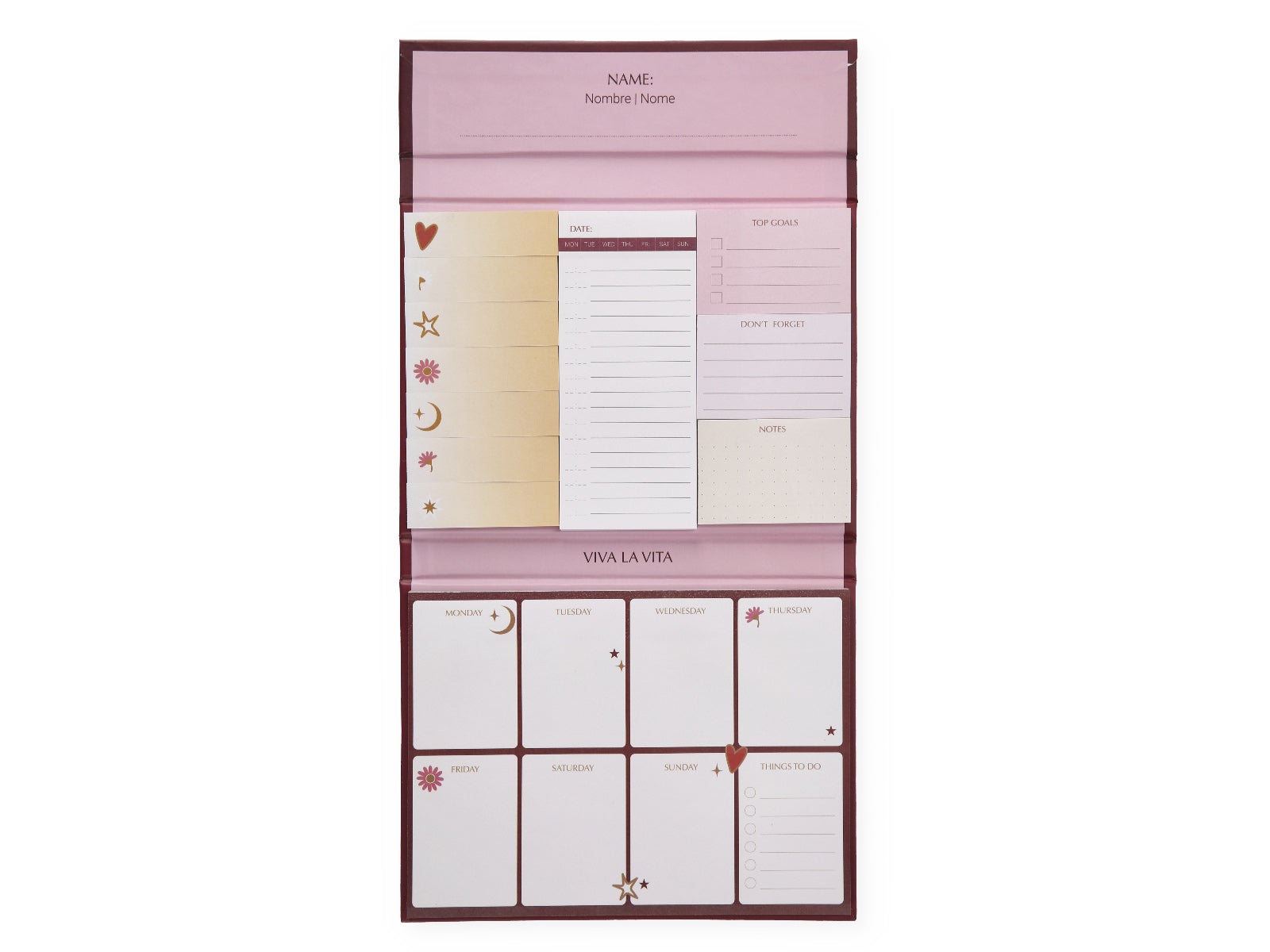 - Planner semanal: espacio para organizar tus dias, apuntar tareas y marcar tus momentos clave.