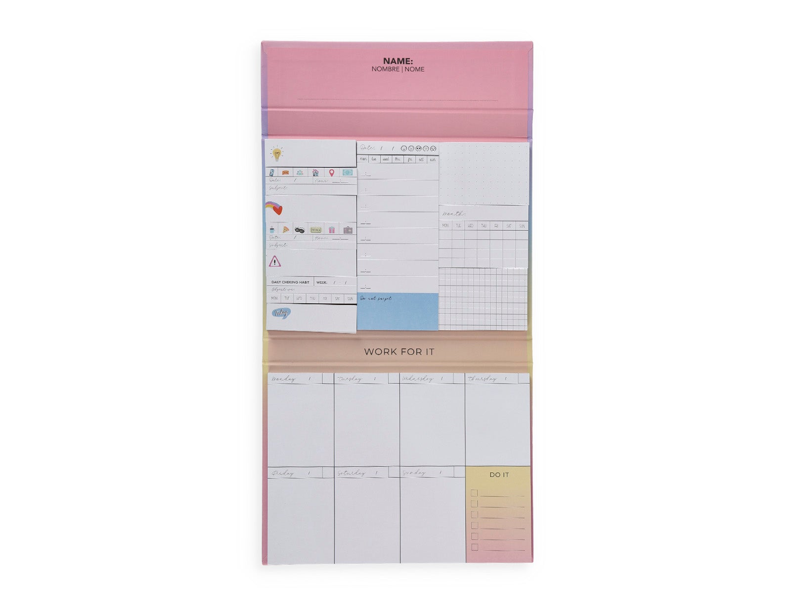 ¿Un organizador semanal que tenga pósits que sean notas, recordatorios o etiquetas? Si, aquí es, el planner con pósits degradado, ¡lo peta!