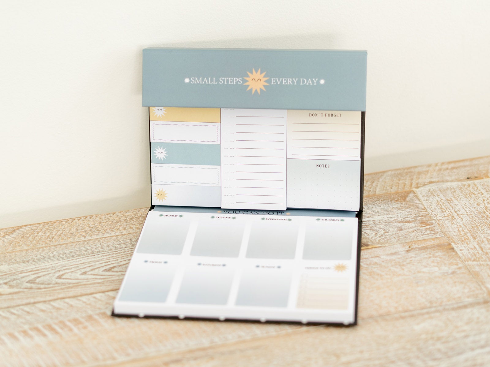 ¡Descubre el poder de la organización con nuestro Planner con posits – Small steps everyday! Pensado para los que adoran tener todo bajo control. No es solo un planner, es una declaración de intenciones para dar esos pequeños pasos diarios que marcan la diferencia. La aventura de organizarse nunca fue tan divertida.