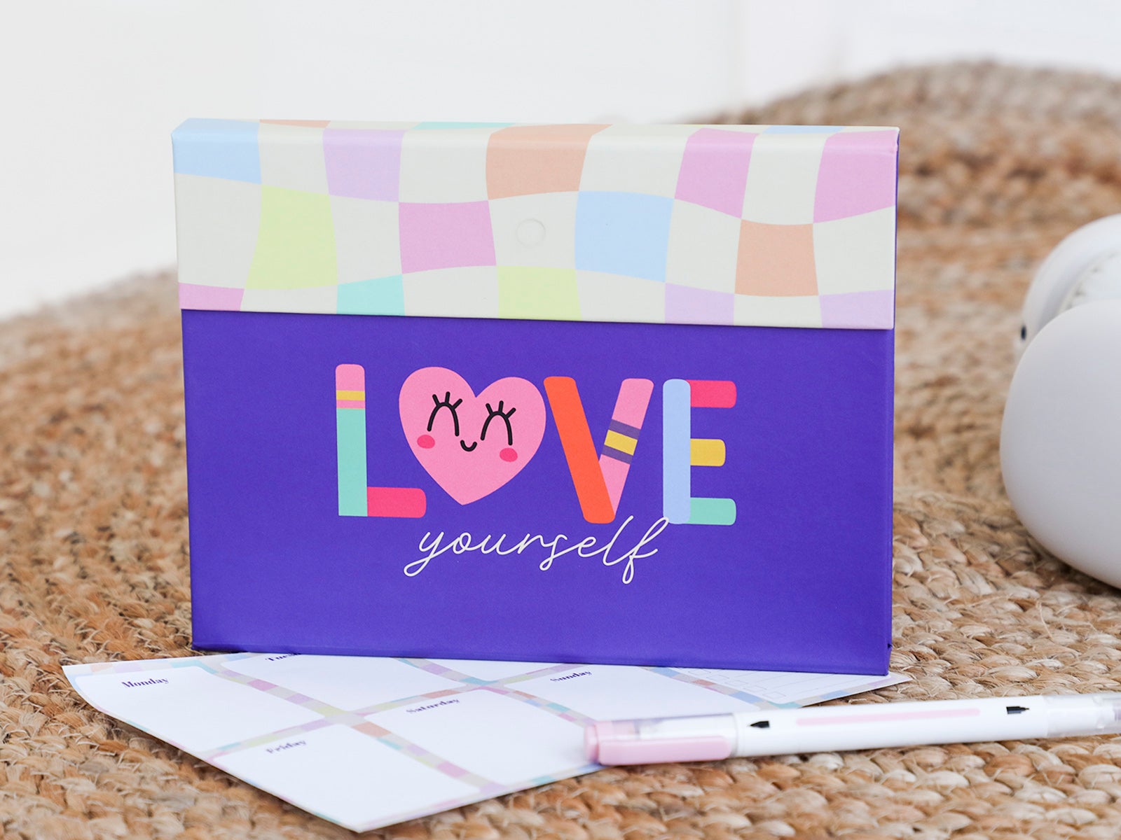 - Motivadora frase central "Love yourself" para recordarte la importancia del autocuidado.
