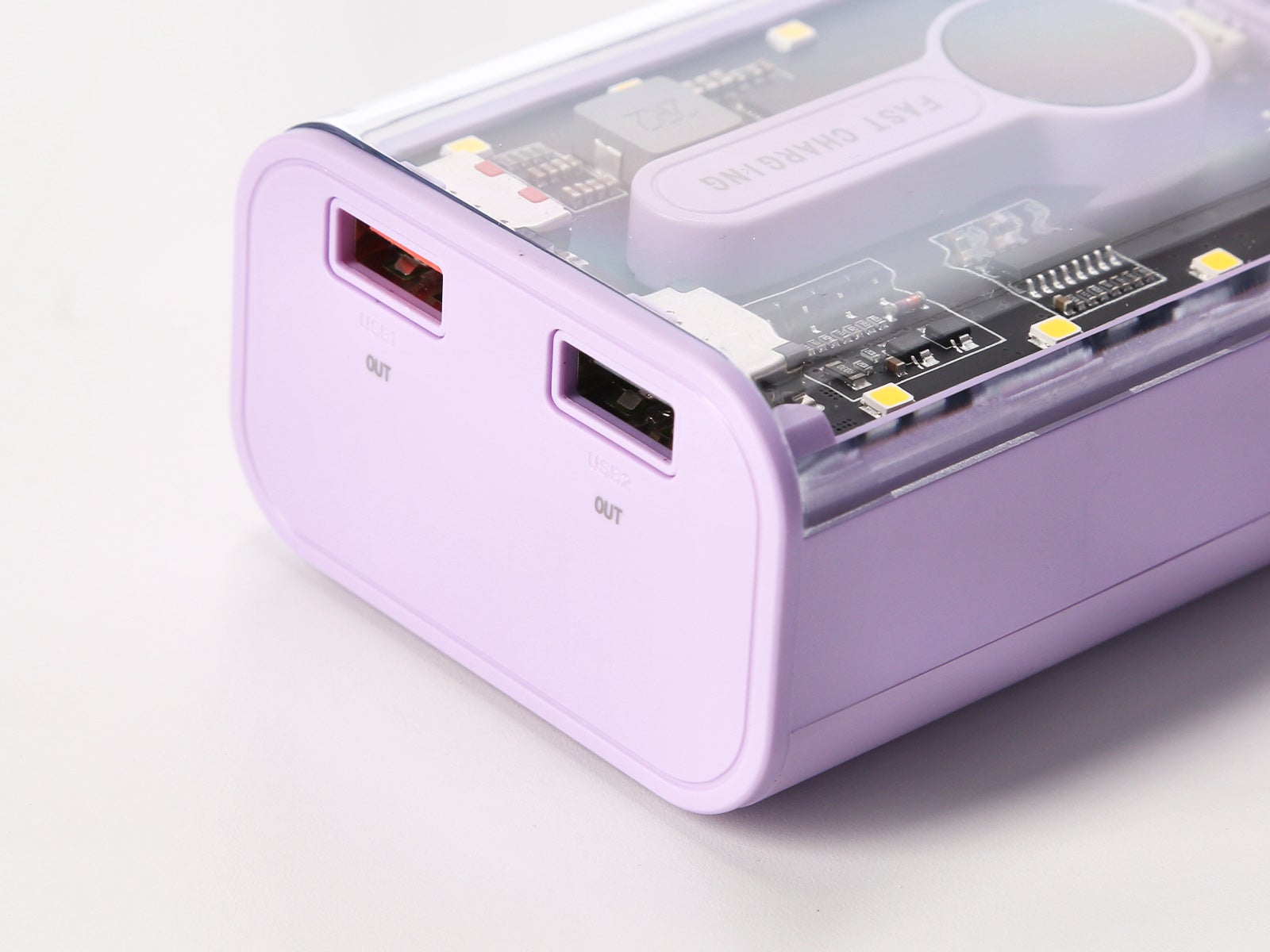 Con un toque de magia lila, la batería portátil 10000 mah transparente lila de ALE-HOP ilumina tus días con estilo. Nunca te quedes sin energía mientras presumes de un diseño único y divertido. ¡Perfecta para cualquier aventura que te espera!