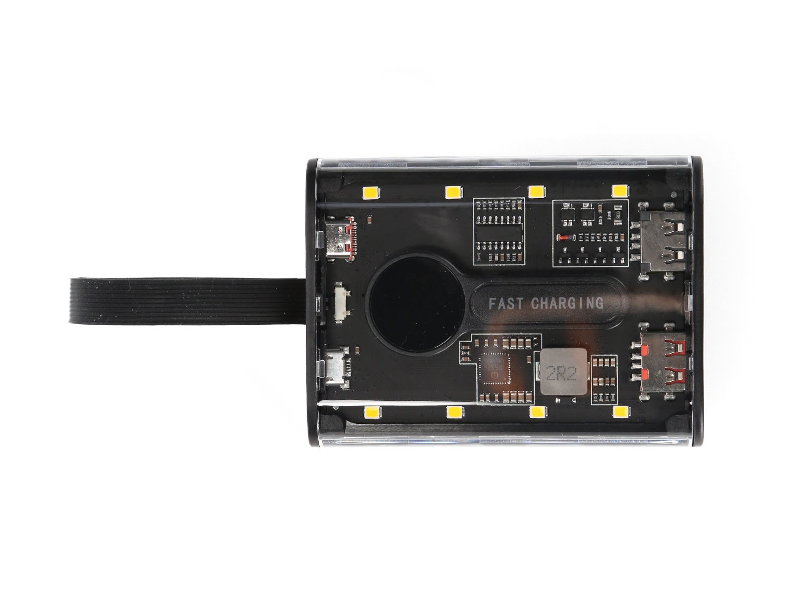 Power bank 10.000 mAh – Transparente negra con indicador LED