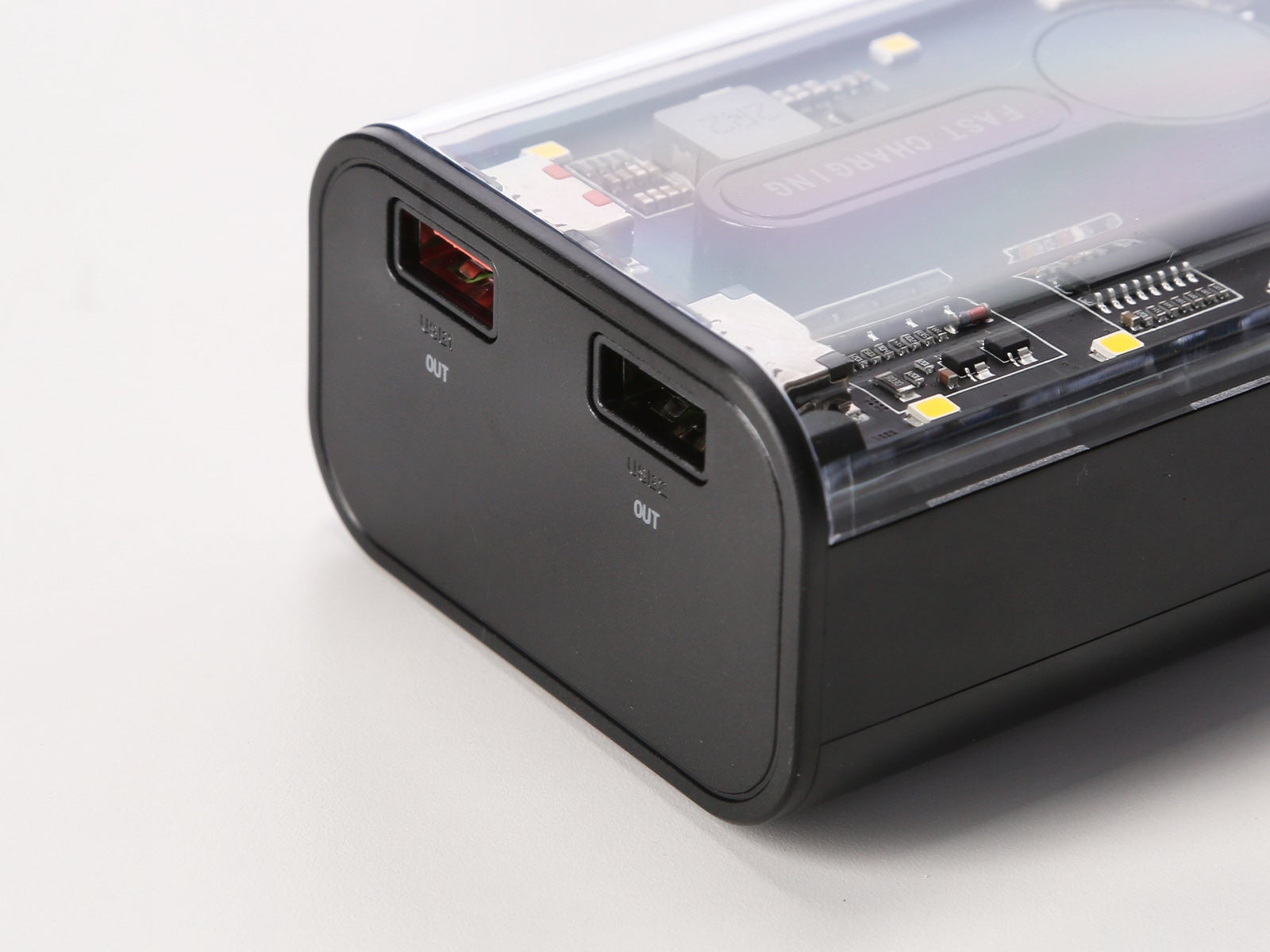 - Power bank 10.000 mAh – Transparente negra con indicador LED