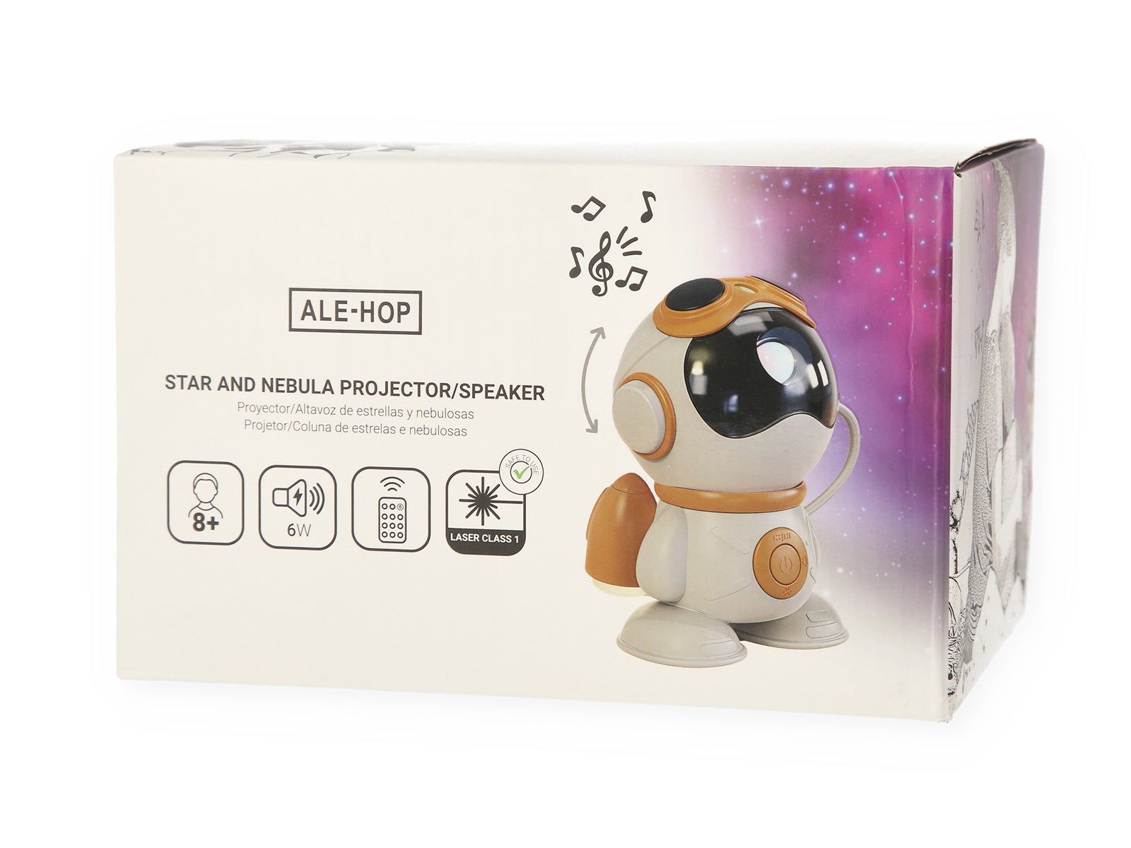 Su diseno inspirado en un pequeno avion le da un toque divertido y diferente, muy en la linea desenfadada de ALE-HOP. Solo tienes que elegir tu melodia, apagar las luces y dejar que las nebulosas iluminen la estancia con un efecto envolvente y super relajante.