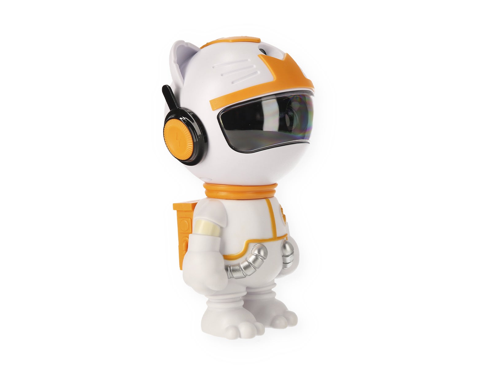 - Diseno encantador: figura de gatito que parece estar jugando con las luces del universo.