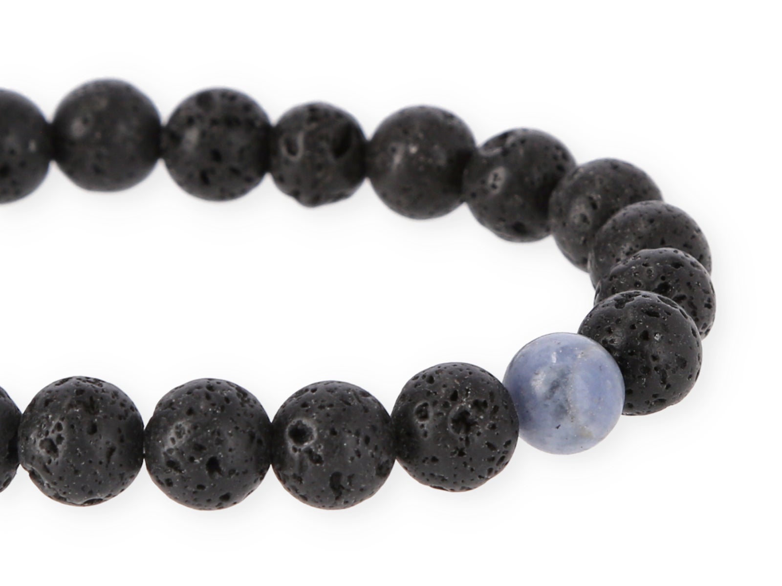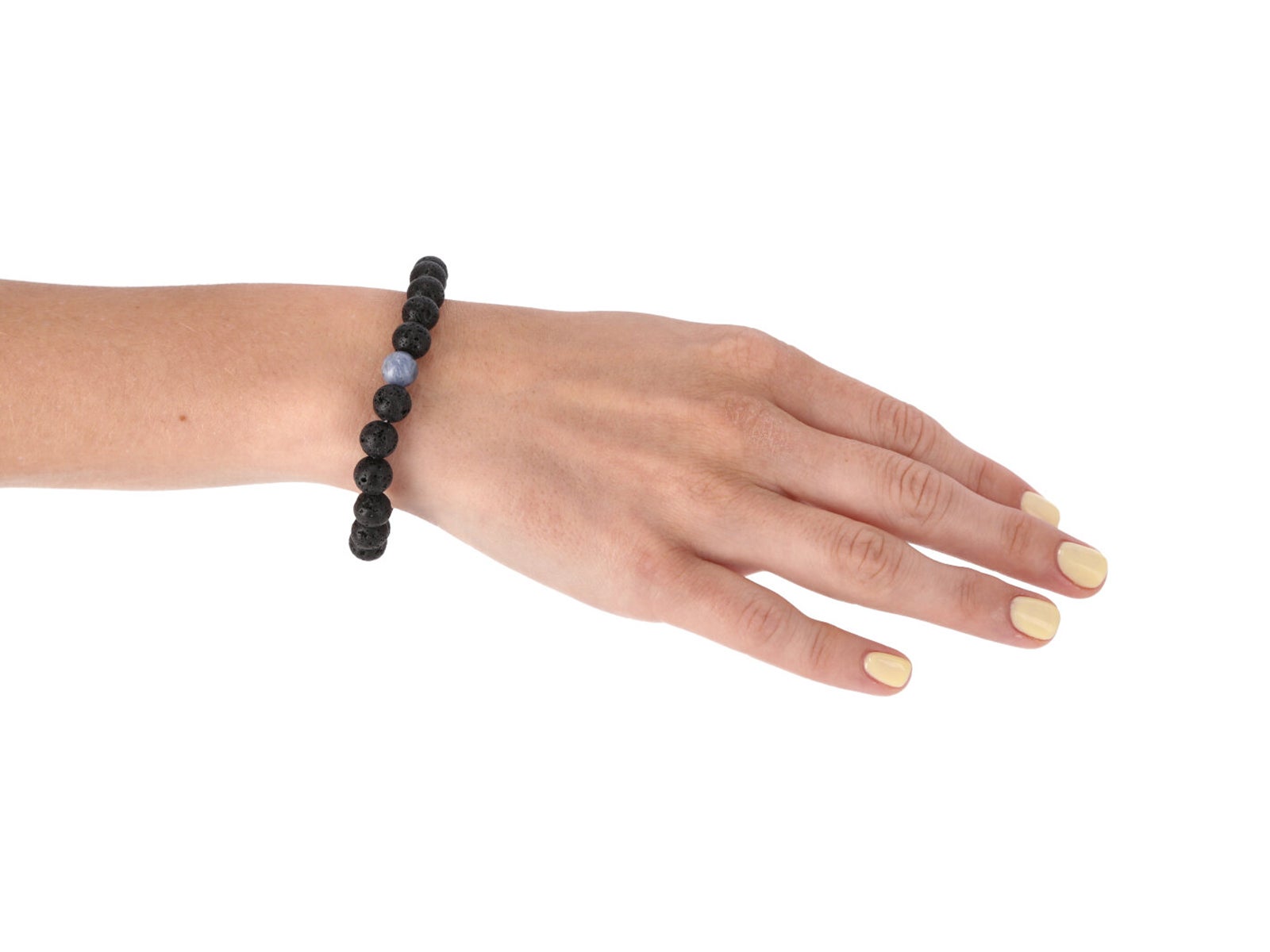 - Diseño diverso: Conformada por cuentas esféricas de color oscuro con una textura similar a la piedra pómez, nuestra pulsera posee una cuenta de ágata azul que, con su acabado liso y tonos vívidos, se distingue entre las demás.