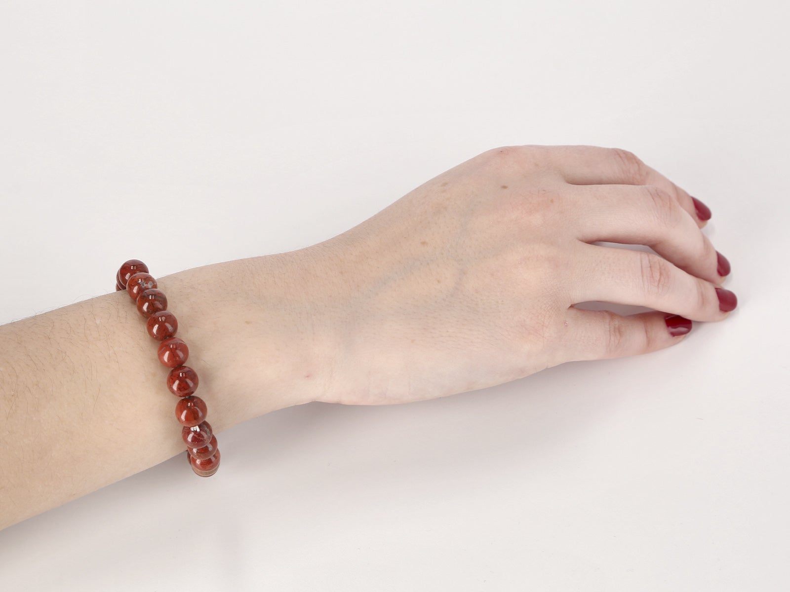 - Diseño: vibrantes piedras jasper rojo que capturan miradas y elevan tu estilo.