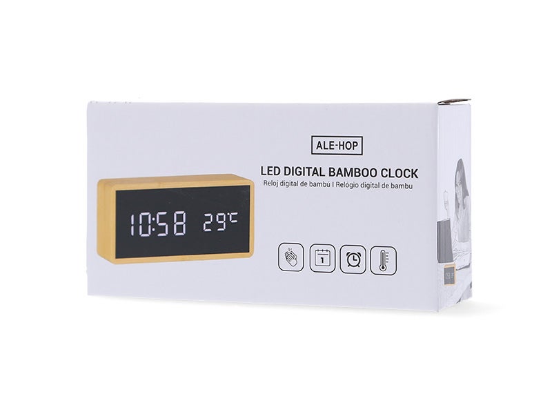El Reloj despertador de bambú de ALE-HOP es más que un simple despertador; es el compañero ideal para comenzar el día con elegancia y un toque de diversión.