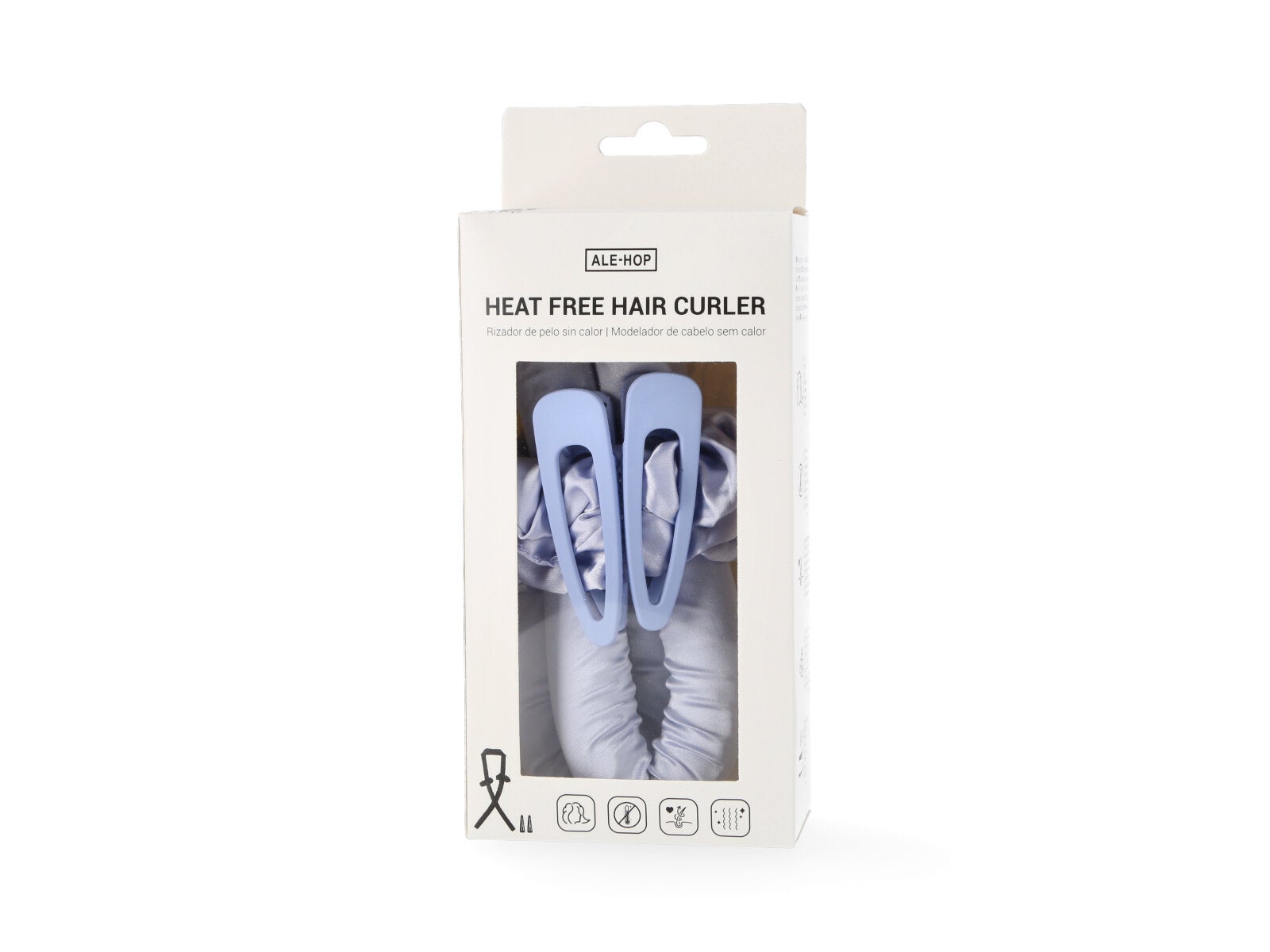 Rizador de pelo sin calor ALE-HOP, en elegante tono azul. Crea rizos perfectos sin daño térmico, de forma sencilla. Incluye tubo flexible y dos bandas de cabello elásticas a juego. Ideal tanto para uso diario como para llevar en viajes.