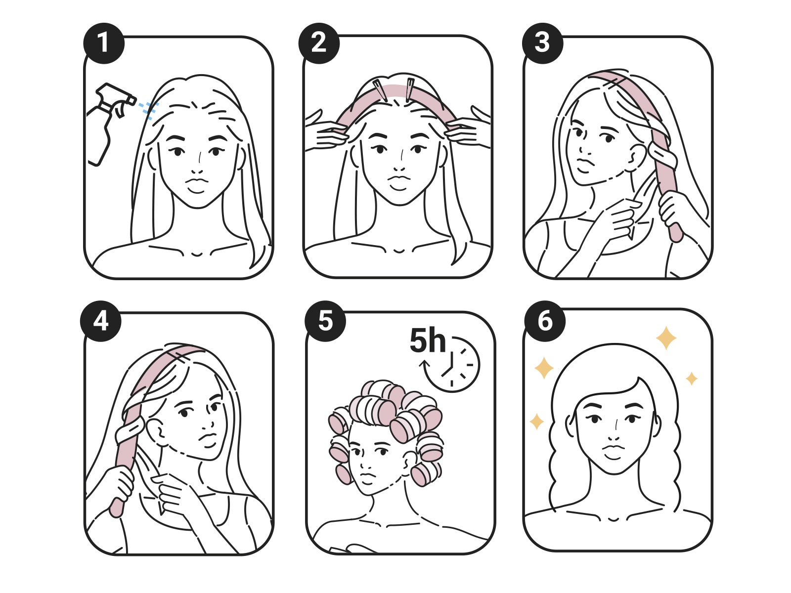- Piezas incluidas: El conjunto contiene una banda suave y flexible para el cabello, dos pinzas de plástico que mantienen tu cabello en su lugar durante el proceso de rizado, y dos bandas elásticas de tela satinada de color rosa para recoger el cabello.