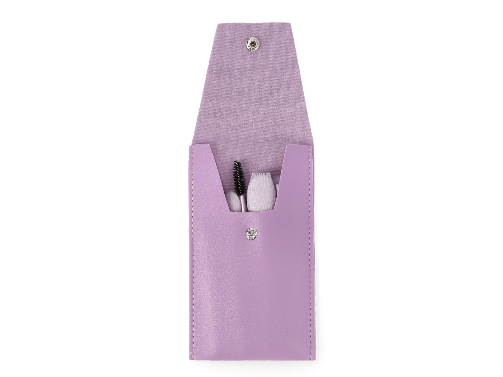 - Diseño: Brochas con acabados lila brillantes y cerdas suaves, todo dentro de un neceser lila con una inspiradora frase en bajo relieve que te recordará cada día lo especial que eres.