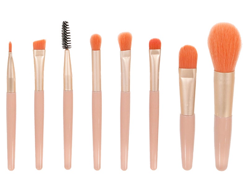 Set de 8 mini brochas de maquillaje con neceser rosa