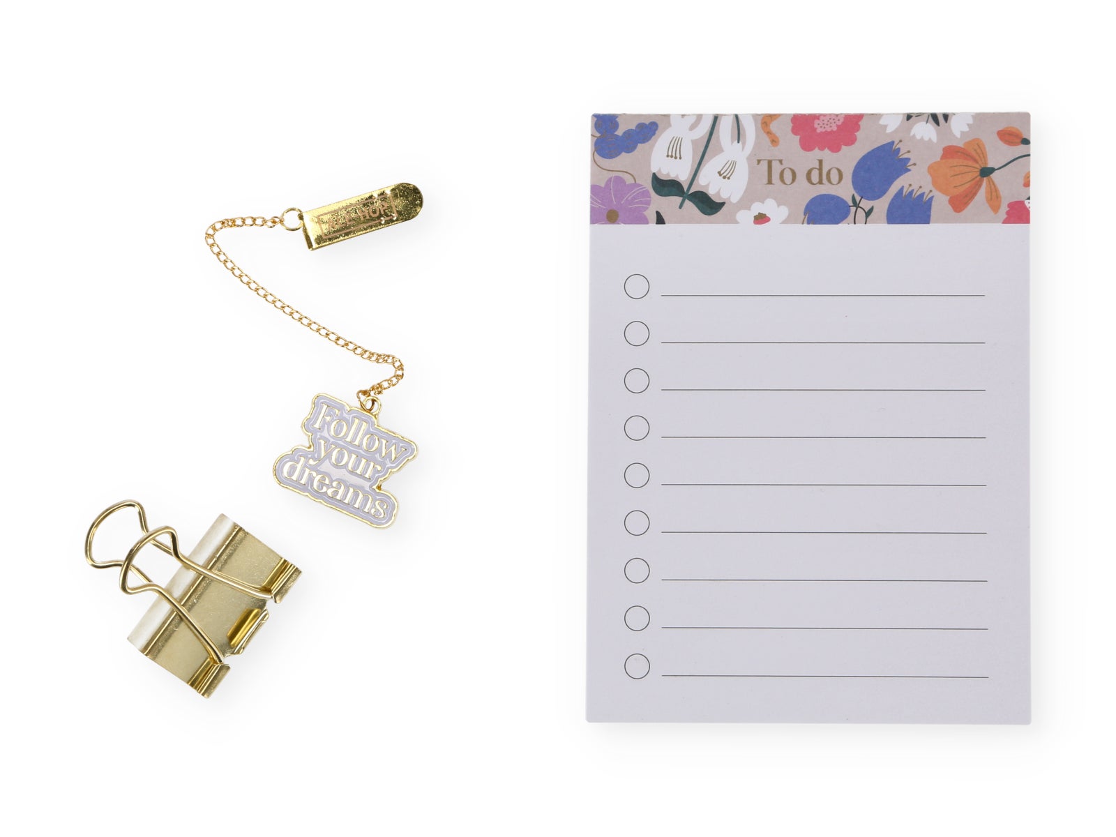 En ALE-HOP queremos que sigas tus sueños con estilo y organización. El Set de notas 3 en 1 - Follow your dreams es tu aliado perfecto para dejar volar tu imaginación mientras mantienes todo bajo control. Ya sea para anotar esa idea brillante o planificar tus próximas aventuras, este set será tu mejor amigo en papel.