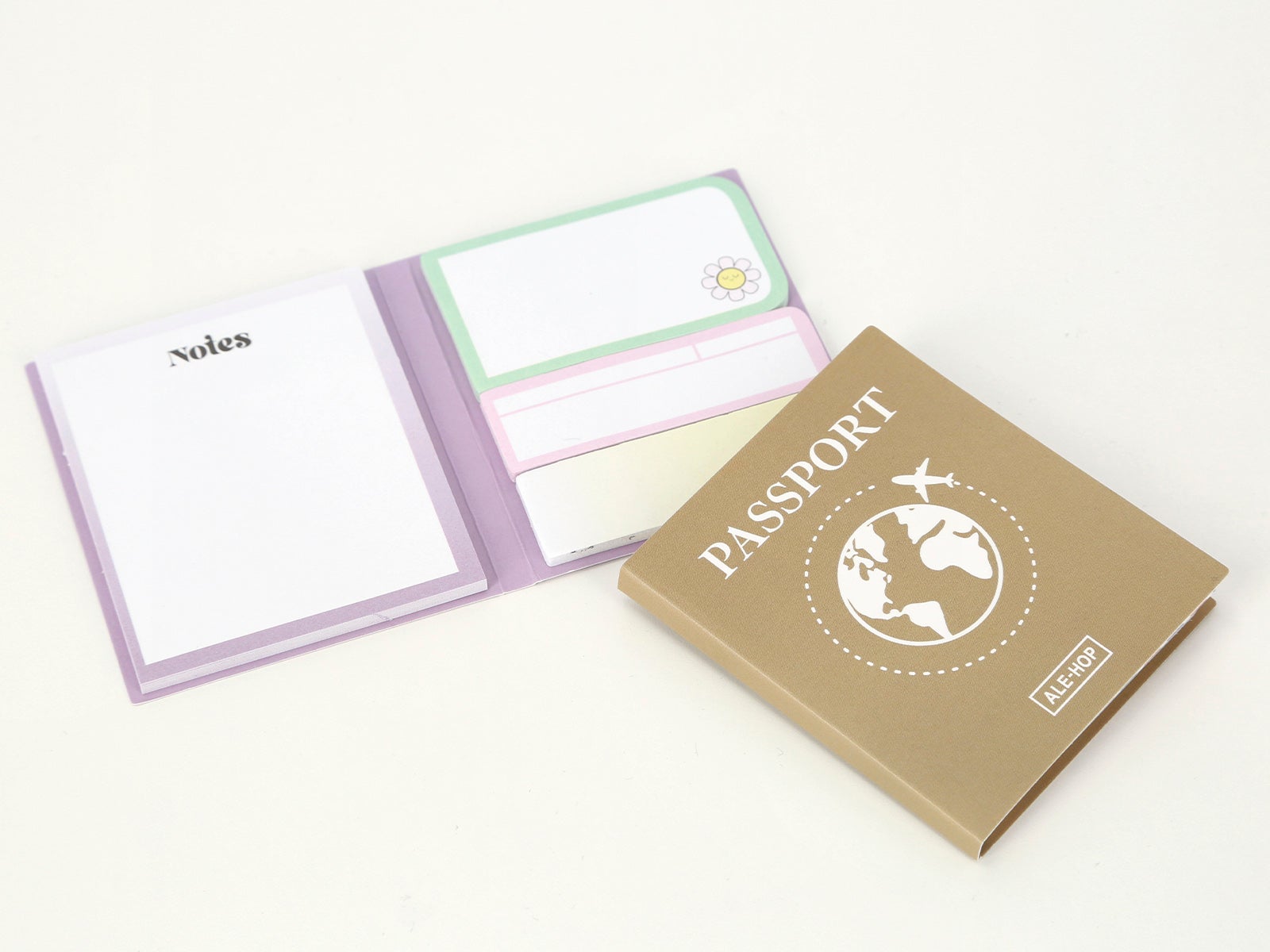 Lleva la alegría de viajar a tu día a día con el Set de notas adhesivas - Passport/Smile de ALE-HOP. Este versátil compañero te invita a documentar tus aventuras cotidianas y sueños futuros a la vez que te organiza con un toque sonriente.