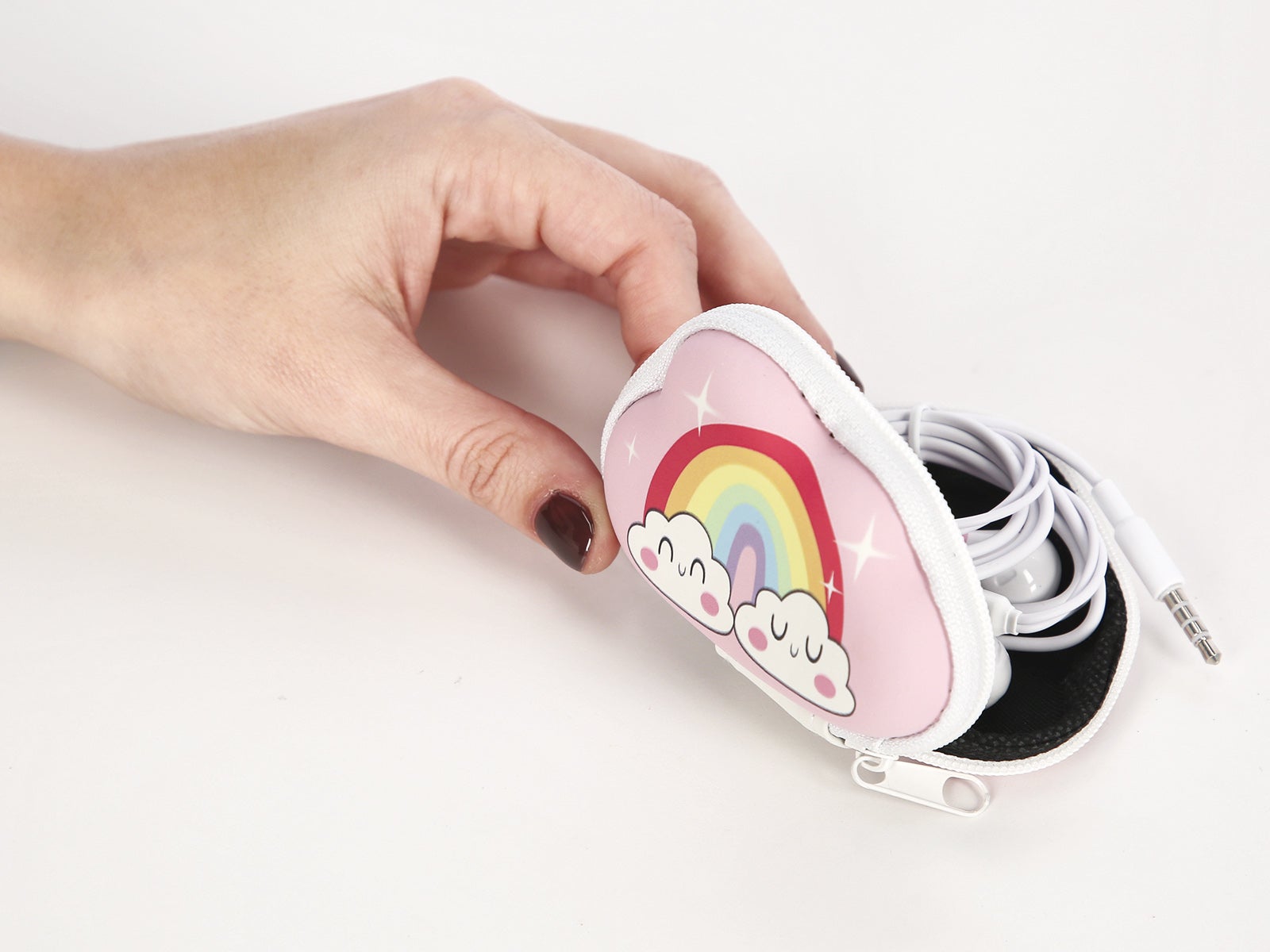 Set funda y auriculares con cable 3.5mm - Arcoíris