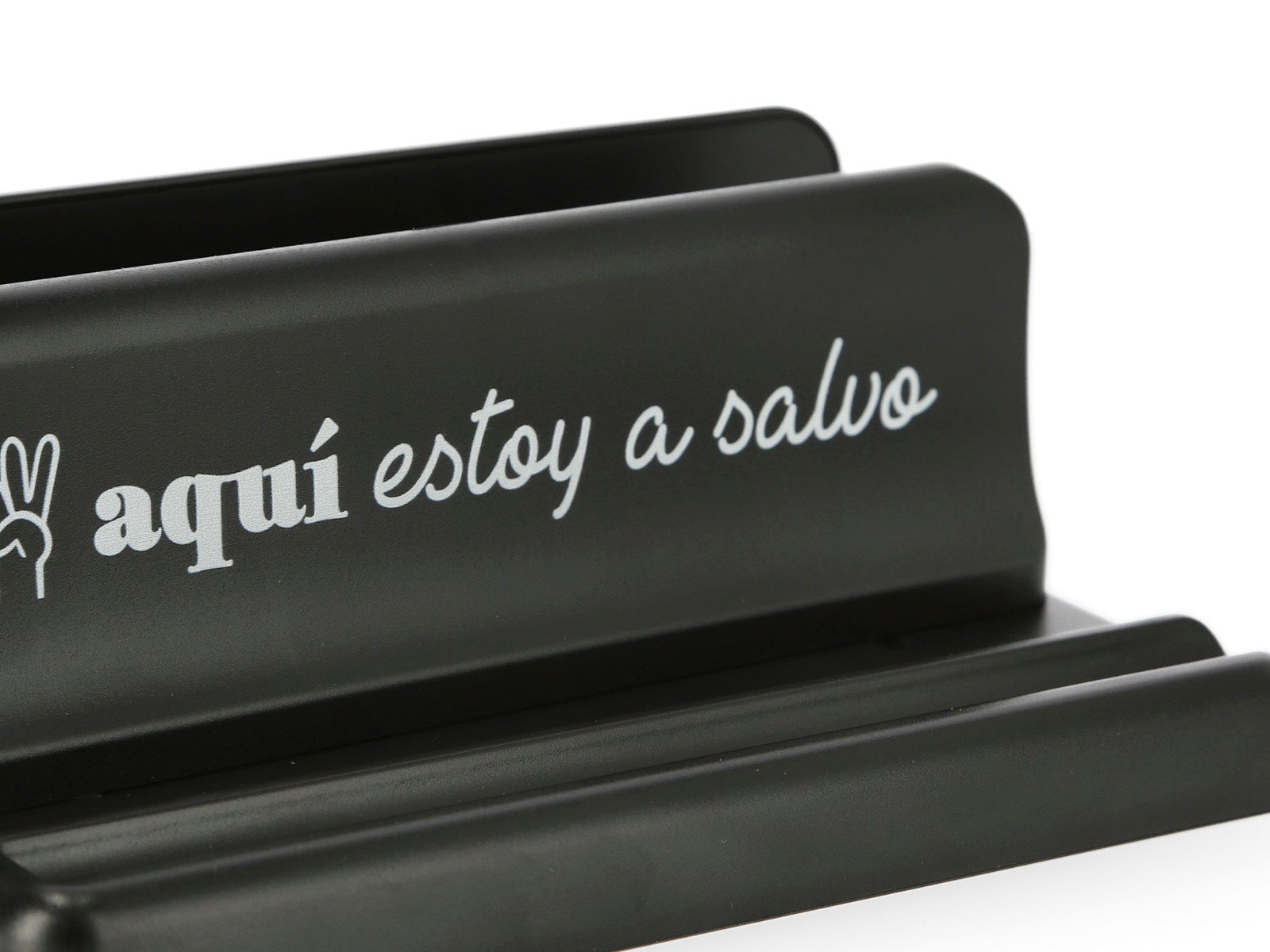 - Diseño Moderno: Con un toque minimalista y un mensaje "aquí estoy a salvo", tu laptop sabrá que está en las mejores manos. Además, el ícono de la victoria le impregna un carácter jovial y desenfadado.