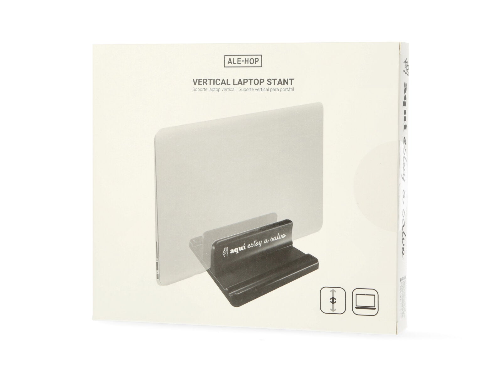 Soporte Laptop Vertical ALE-HOP: une estilo y seguridad con ajuste universal, diseño moderno anti-deslizante y ajustable. Ideal para cualquier escritorio y comprometido con el medio ambiente.