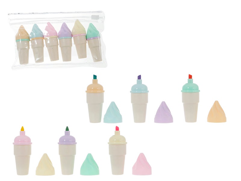 - Diseño: Estos subrayadores tienen la forma de un delicioso cucurucho, con colores vibrantes y divertidos que coinciden con el color de la tinta.