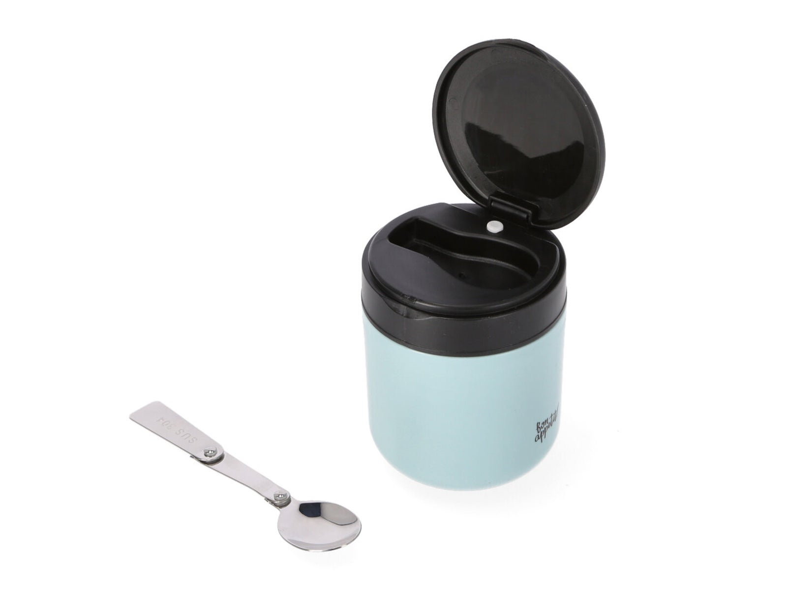 - Diseño inteligente: un táper compacto pero espacioso con una tapa que incluye una cuchara, perfecto para tus comidas fuera de casa.