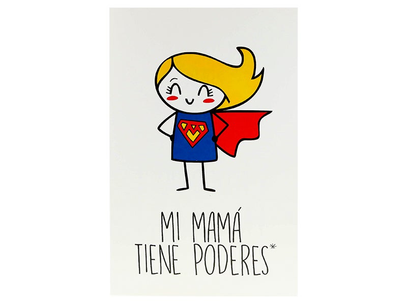 Dale un toque mágico al día de mamá con la Tarjeta A4 - Mi mamá tiene poderes. Con un diseño encantador y gráficos vibrantes, esta tarjeta es perfecta para cualquier ocasión especial o para hacerla sonreír. Haz que tu mamá se sienta única con ALE-HOP.