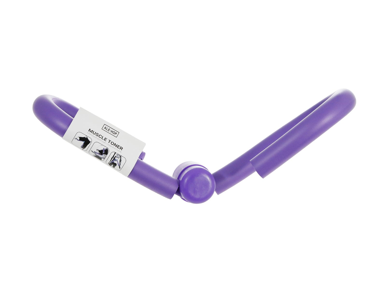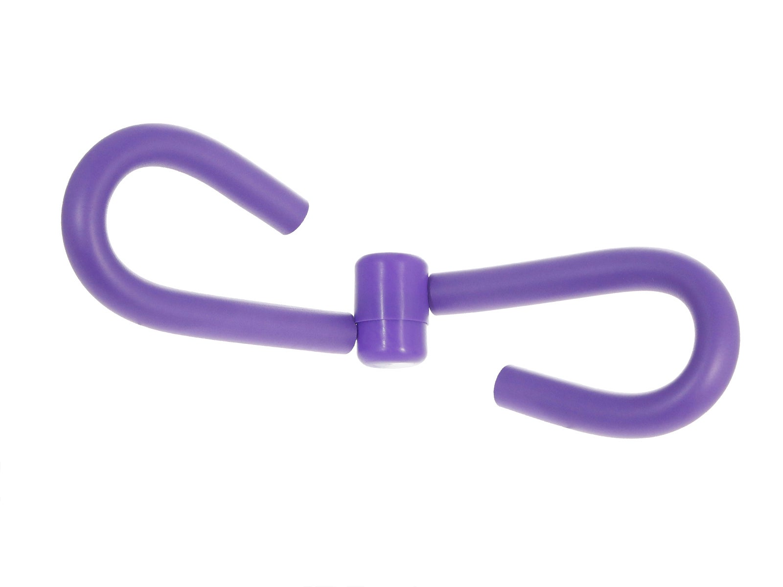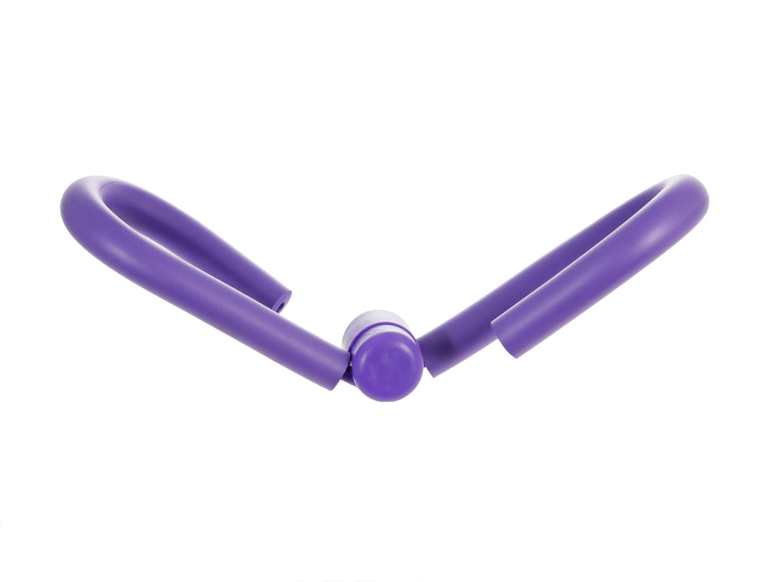 Diseño: dos brazos o mangos en forma de 'U' y recubiertos de espuma, unidos mediante un núcleo redondo, todo de color morado.