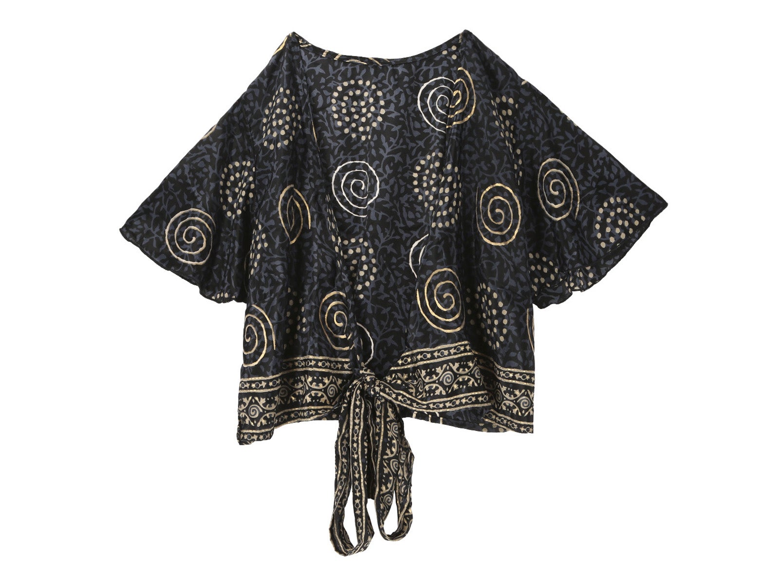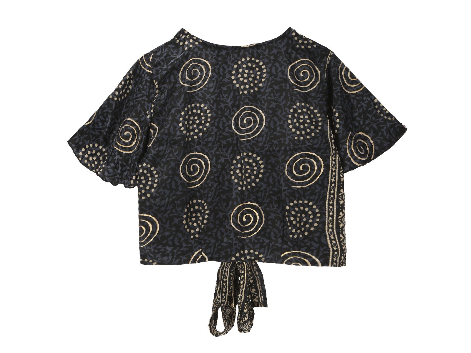 Descubre el Top fluido manga corta espirales de ALE-HOP, una prenda que se convertirá en tu aliada perfecta para cualquier ocasión. Su diseño vibrante te hará destacar entre la multitud, mientras que su corte fluido te asegurará comodidad y frescura todo el día.