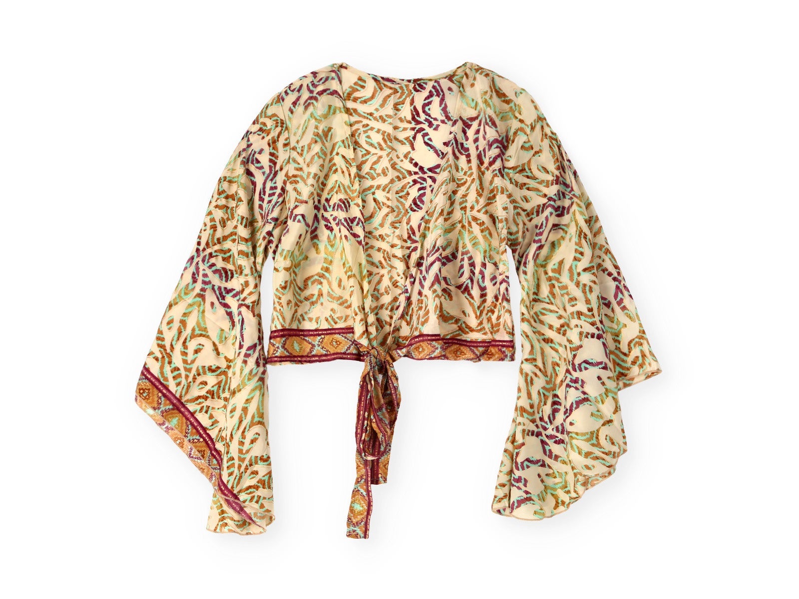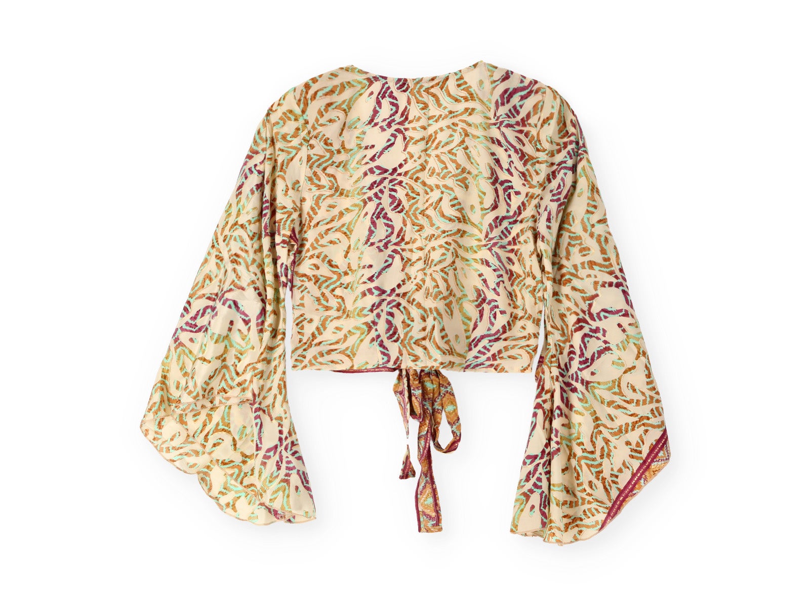 - Mangas largas y acampanadas, ideales para moverte con gracia
