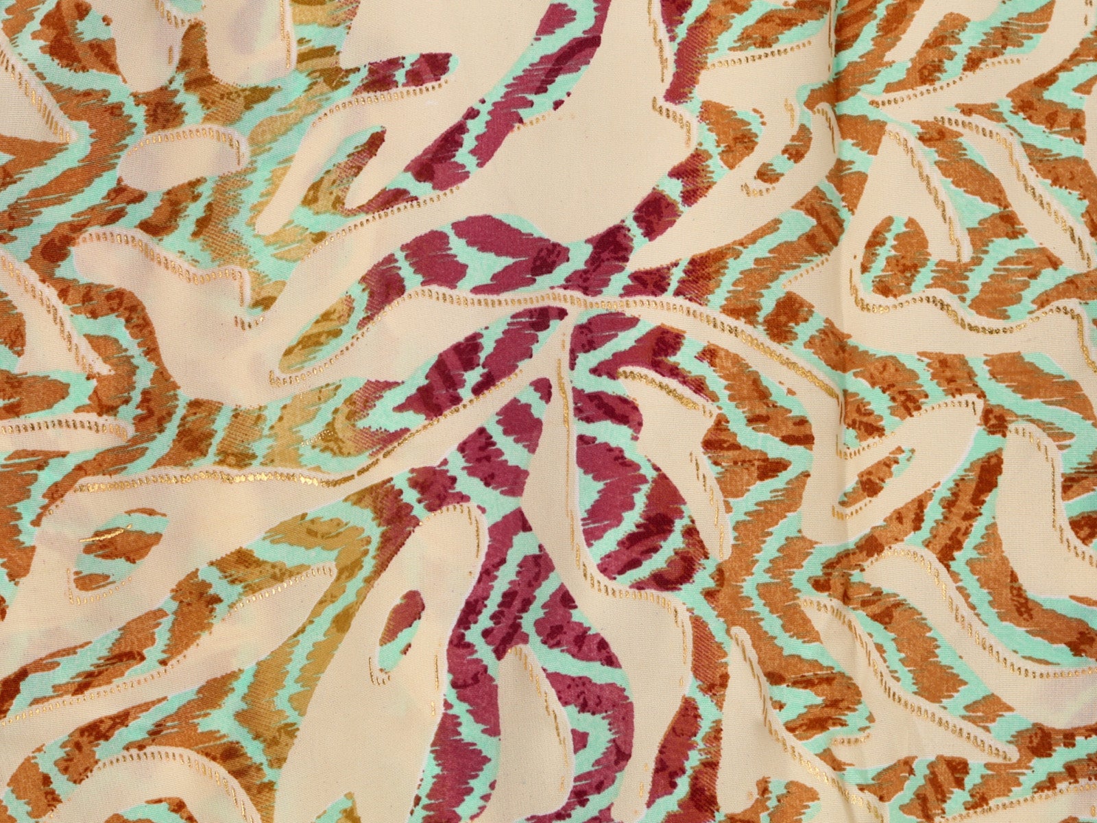 - Estampado paisley abstracto que evoca aventuras étnicas