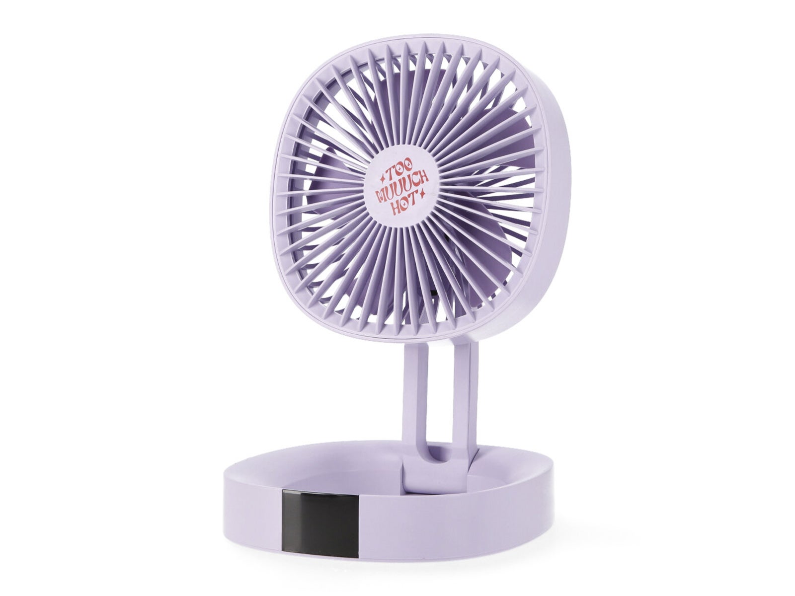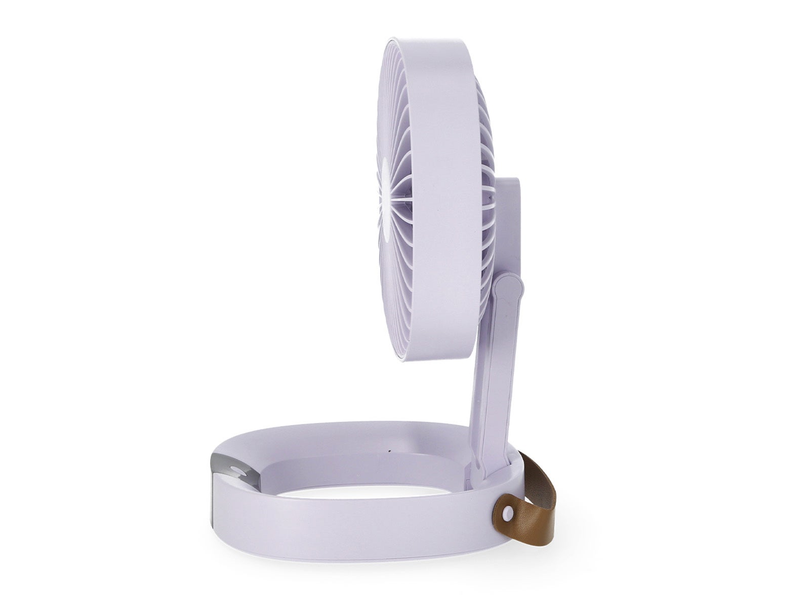 Ventilador plegable lila con diseño minimalista, portátil y ajustable a varias velocidades. Disfruta de frescura y confort en cualquier lugar con funcionalidad táctil y sostenible. Ideal para tu verano con estilo.