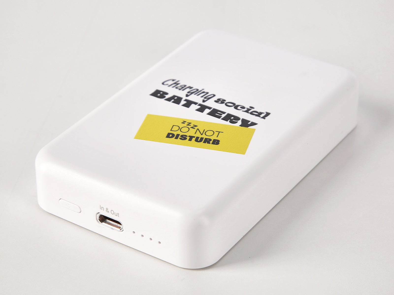 Mantieni la tua energia sociale sempre al massimo con la batteria portatile wireless 10000 mAh - Charging social battery. Ideale da portare in borsa o nello zaino, ti accompagna in viaggi, lezioni, ufficio e quei piani improvvisati che tanto ci piacciono in ALE-HOP.