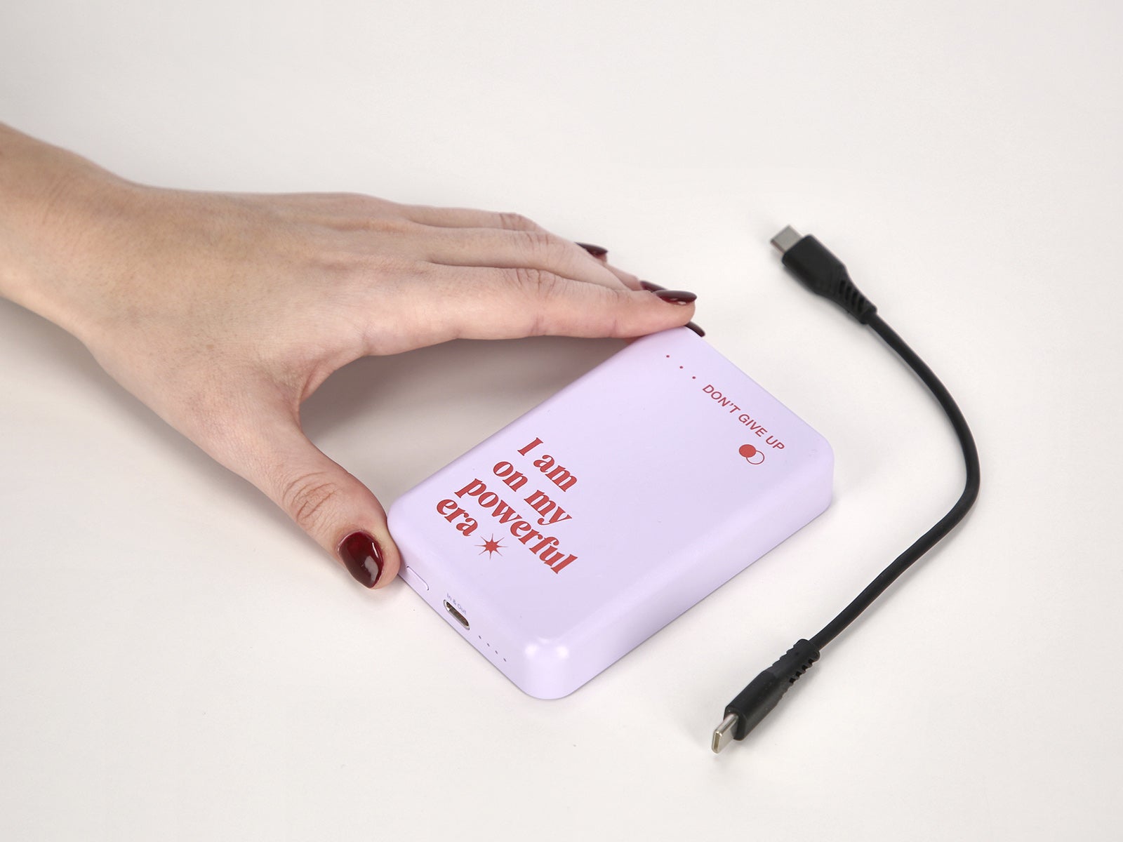 Porta la tua giornata al livello successivo con la batteria portatile wireless 10000 mAh - I am on my powerful era, perfetta per caricare i tuoi dispositivi mentre passi da un piano all'altro. Leggera, comoda e con un design moderno, è l'accessorio ideale per chi non si ferma mai e vuole rimanere connesso in qualsiasi momento.