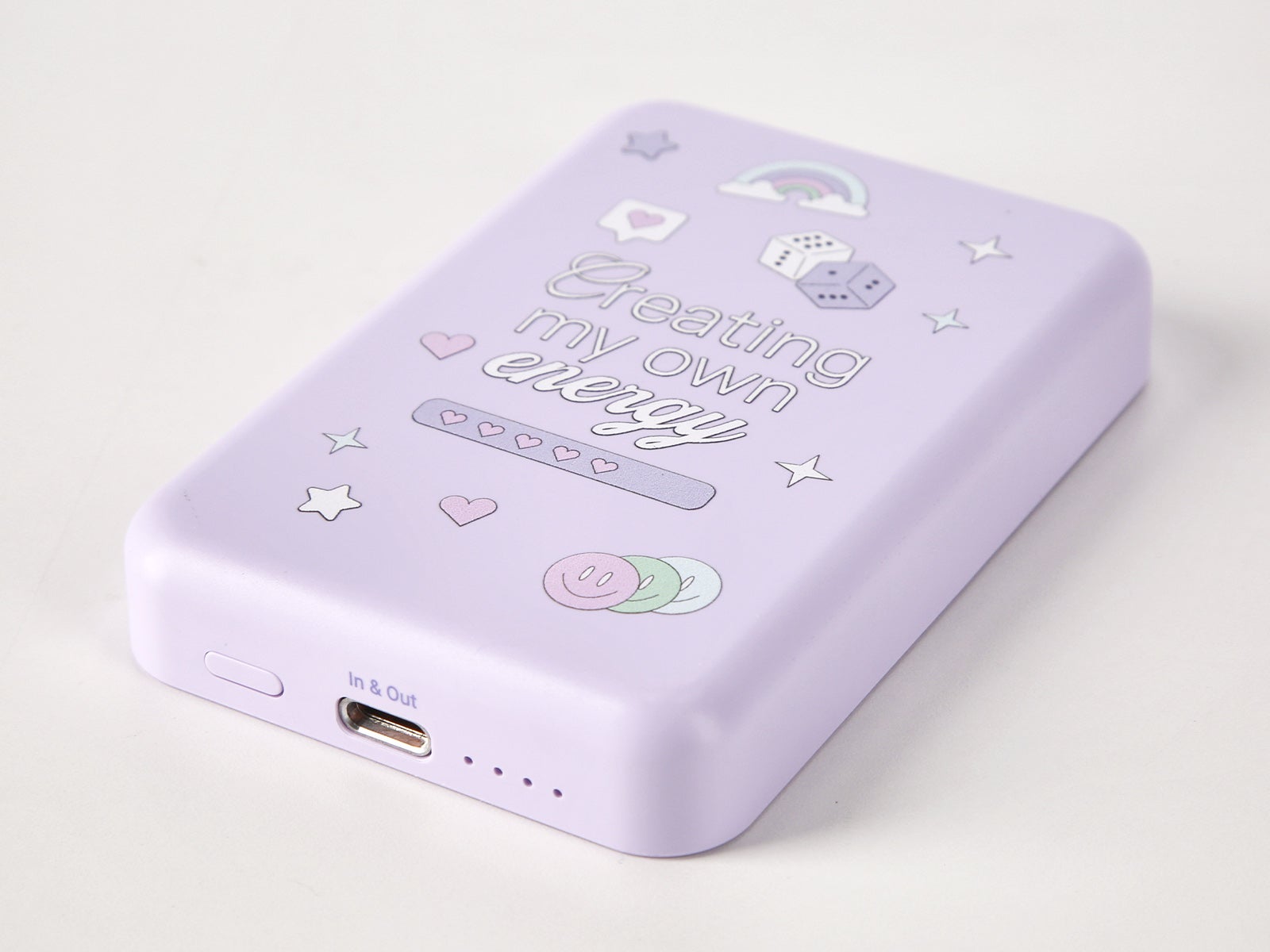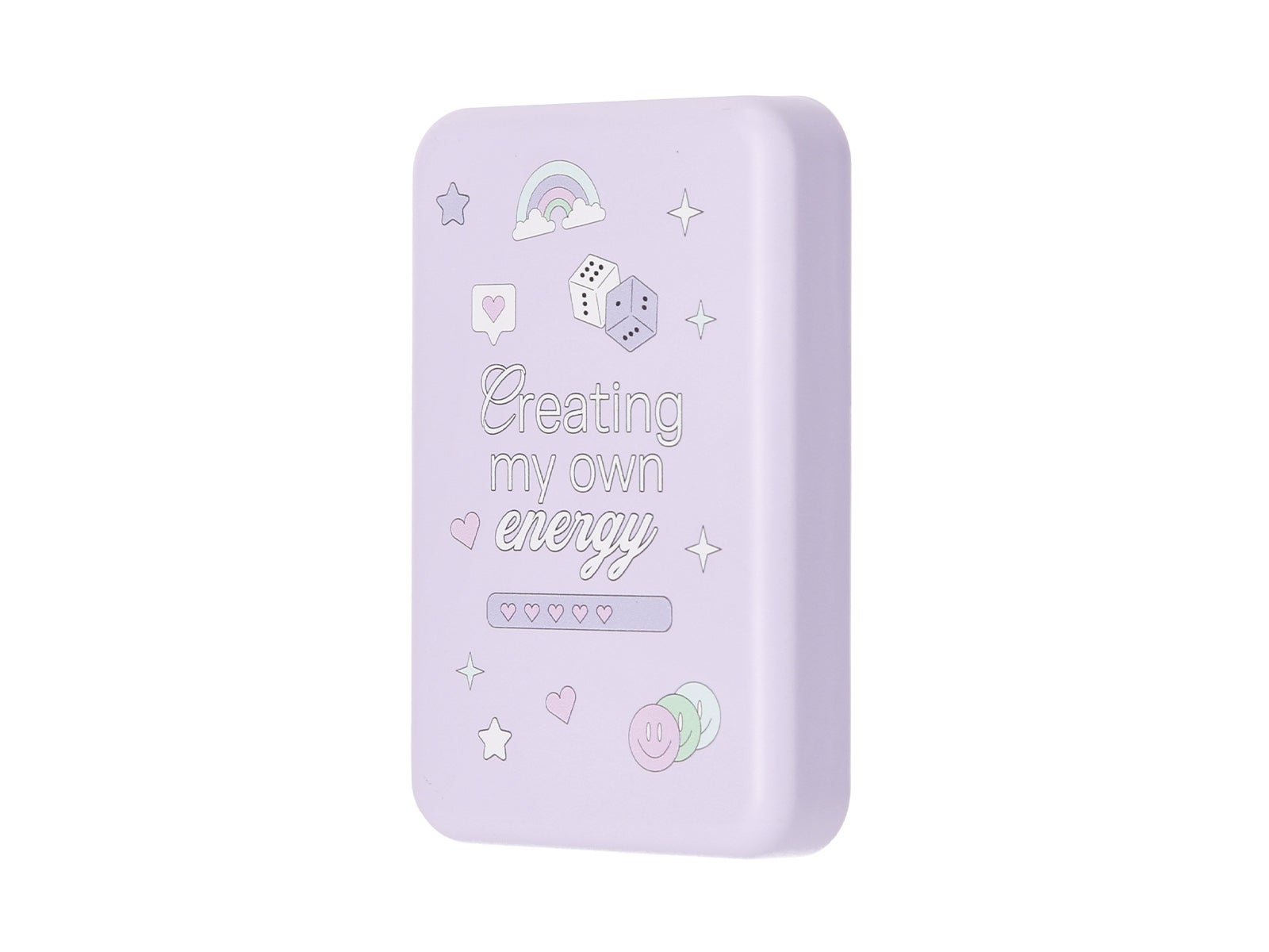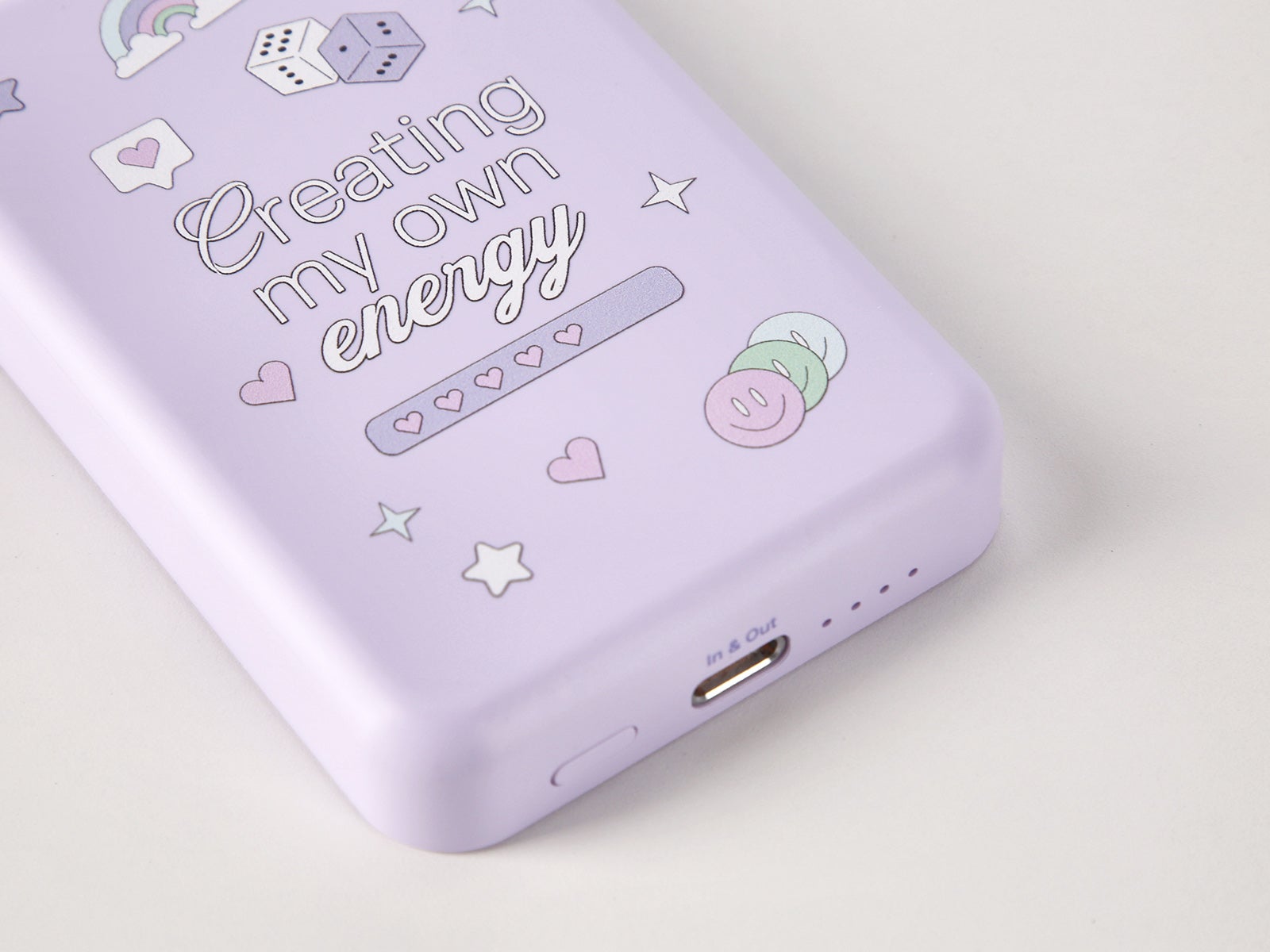 La batteria portatile wireless 5000 mAh - Creating my own energy è perfetta per chi non sta mai fermo e ha bisogno di energia extra in qualsiasi momento. Compatta, divertente e con un messaggio motivante, ti accompagna in ufficio, all'università o nelle tue fughe più improvvisate. Ideale per gli amanti dei gadget originali di ALE-HOP.