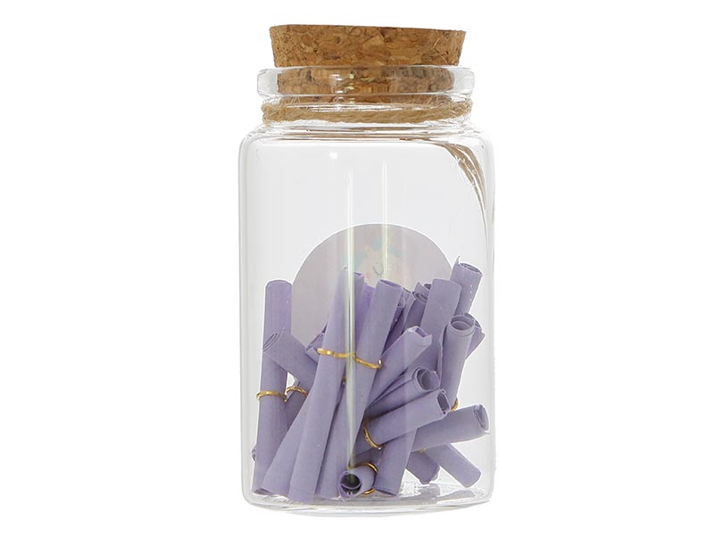Progettate in un vetro trasparente che ti permette di apprezzare il suo interno colorato, troverai cartine arrotolate in un delizioso tono lilla, perfette per scrivere tutti i tuoi desideri e pensieri.