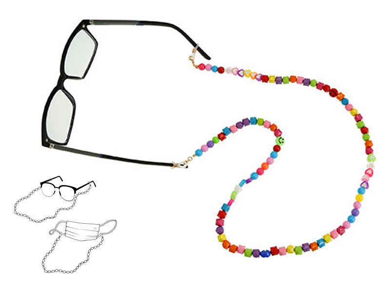 Design: cordino a perline multicolore con adattatori regolabili in silicone alle estremità per adattarli ai tuoi occhiali.