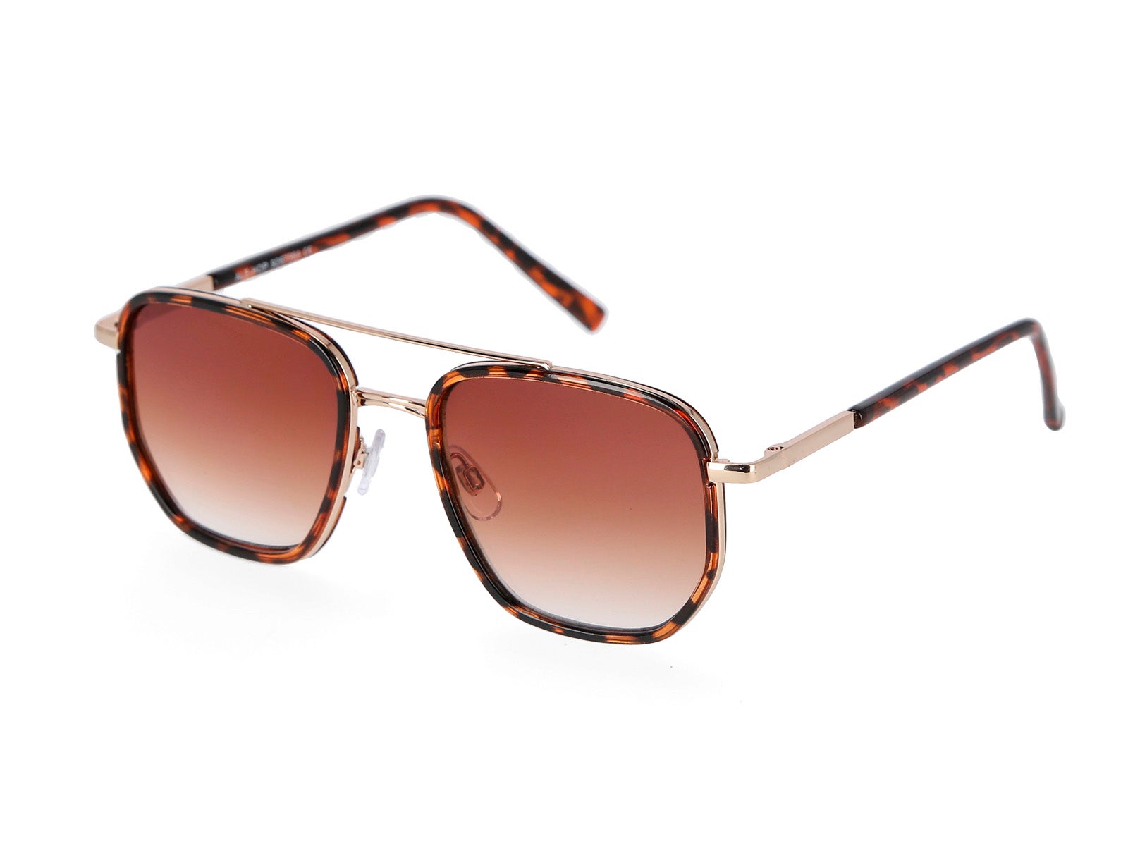 Design: montatura in metallo con stampa animalier. Stile aviatore.