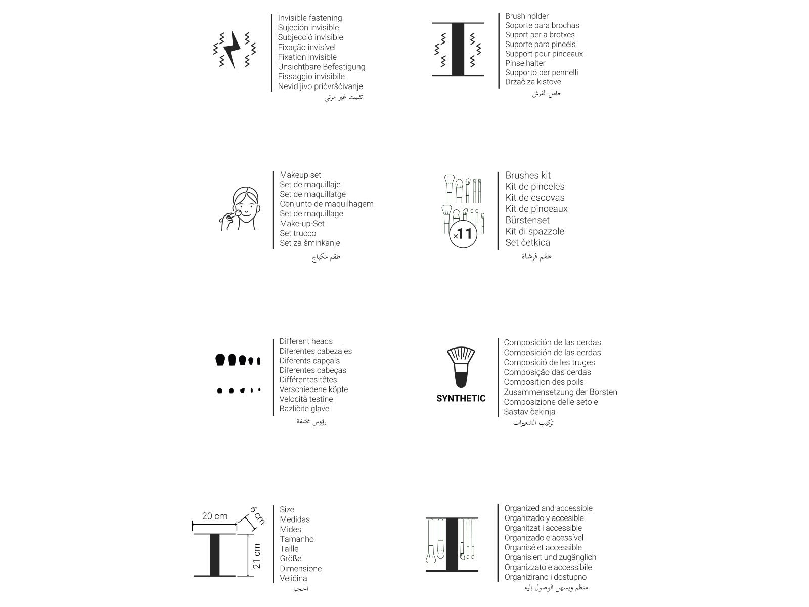 - Organizzazione istantanea: base magnetica che mantiene ogni pennello al suo posto, sempre a vista.