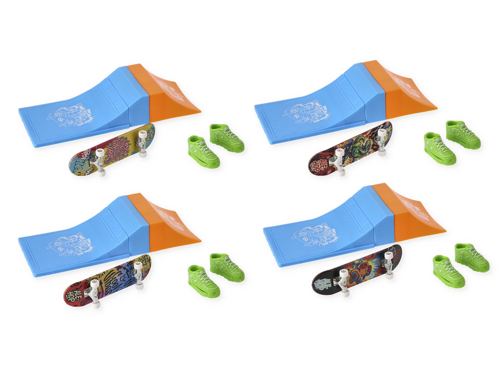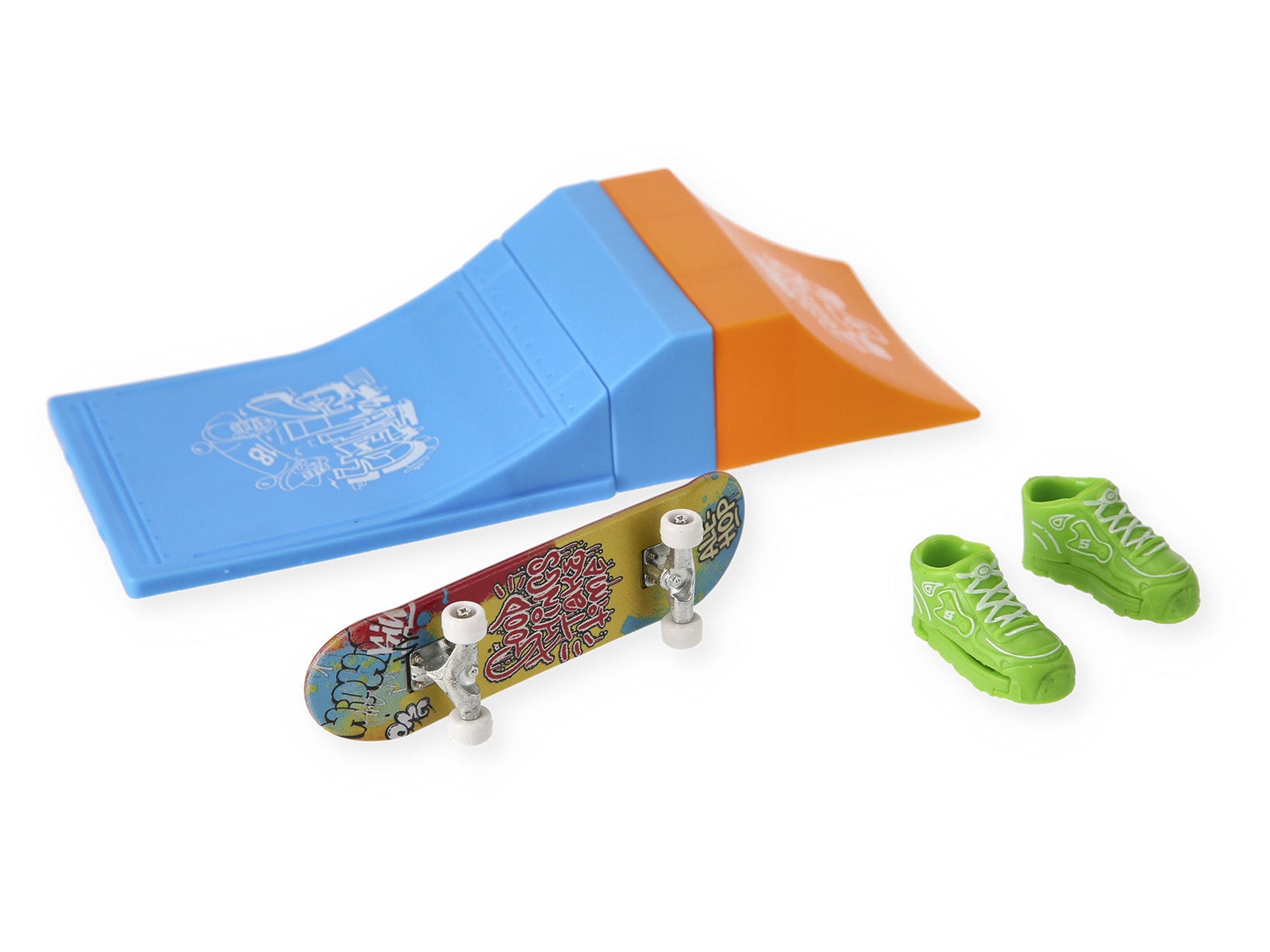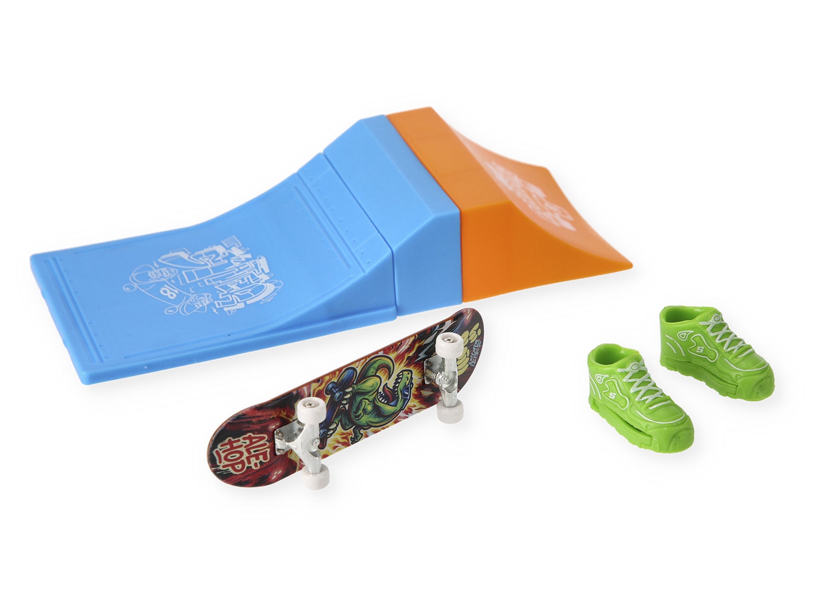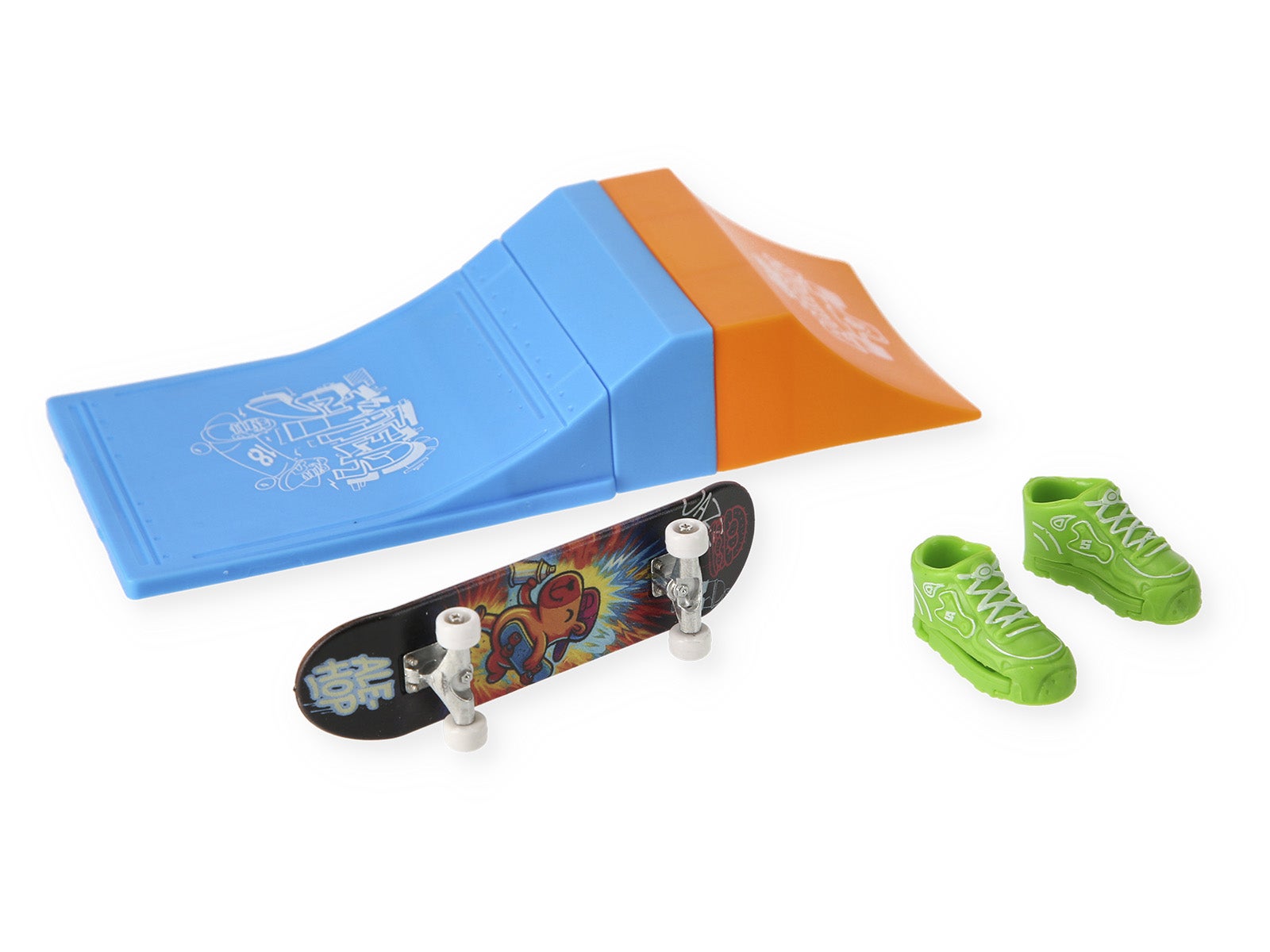 Set completo: Include una rampa di lancio, uno skateboard con grafiche cool e un paio di mini scarpe per le tue dita.