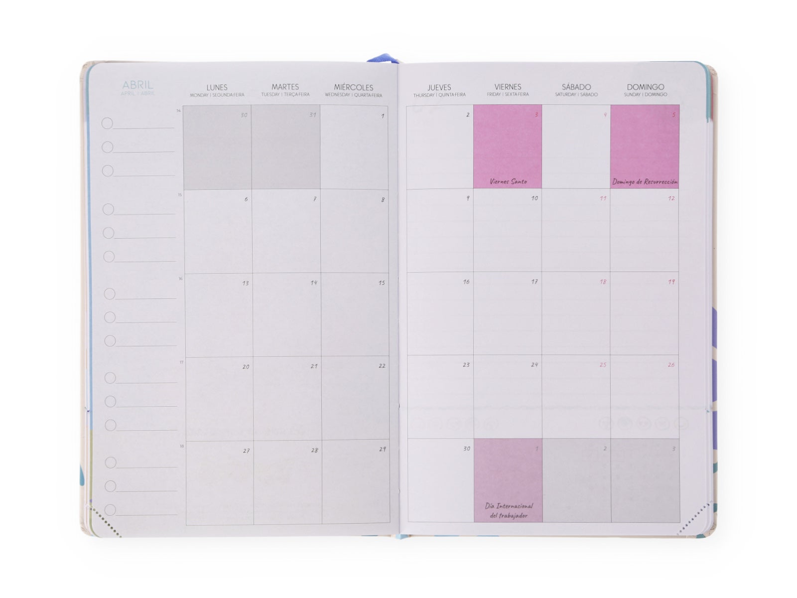 - Planeamento Diário: Espaço amplo para que os teus planos, ideias e lembretes nunca fiquem curtos.