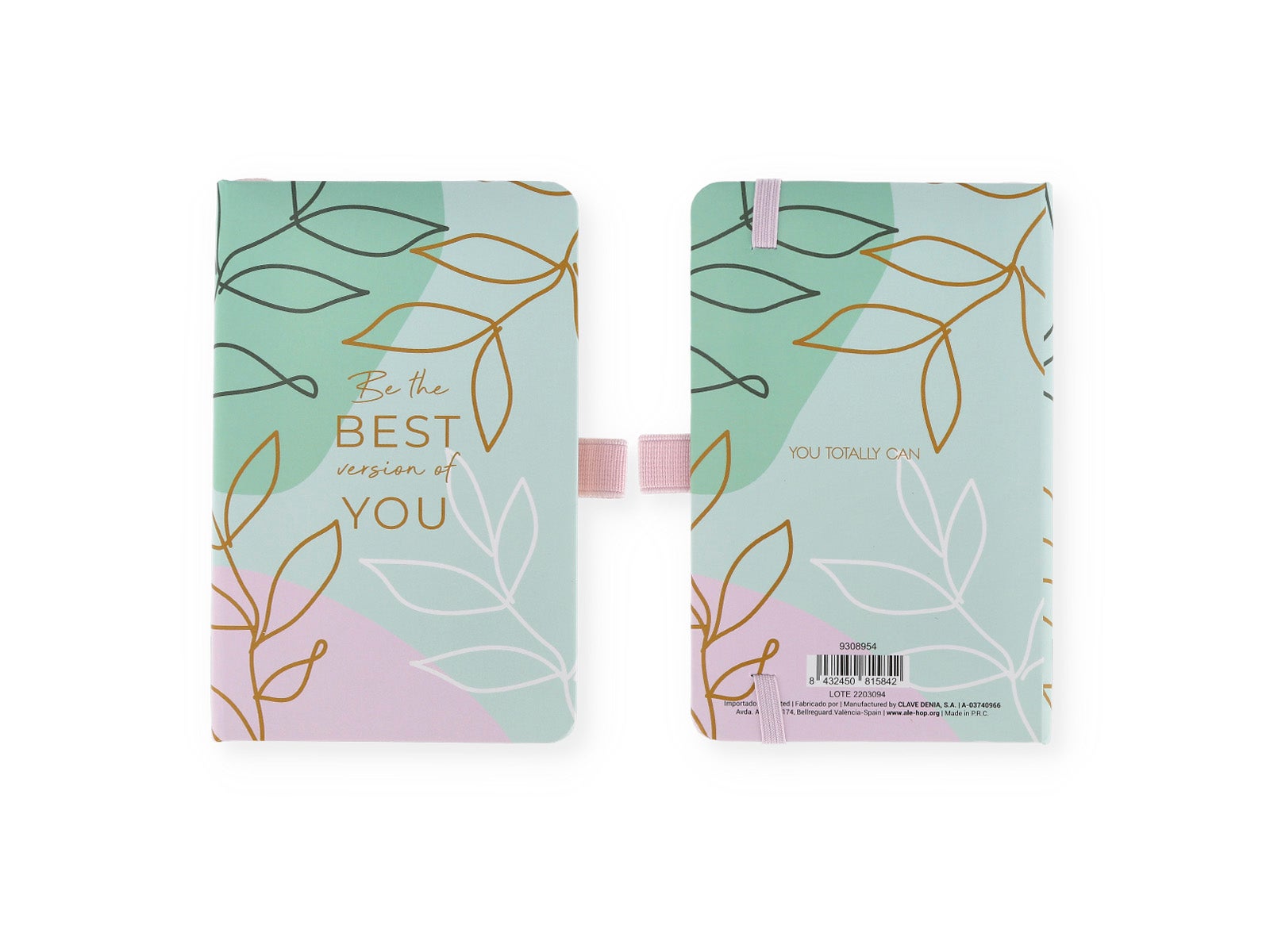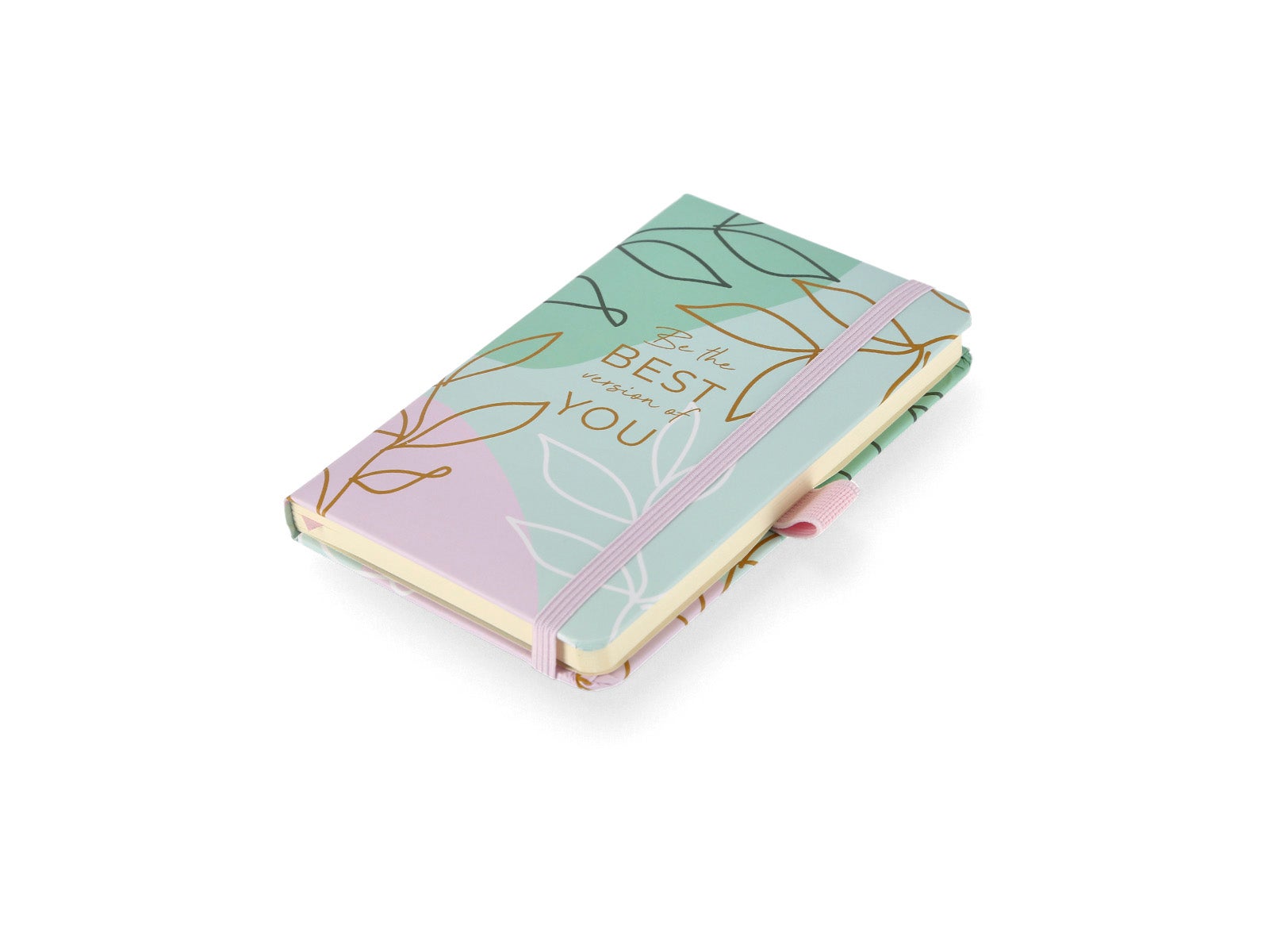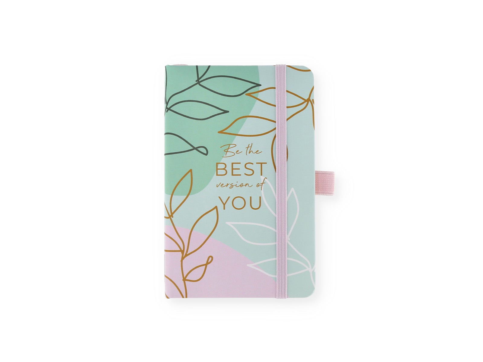 Design: caderno sem argolas com banda elástica na lateral para poder fechá-lo e que nada se perca e elástico para colocar a tua caneta favorita.