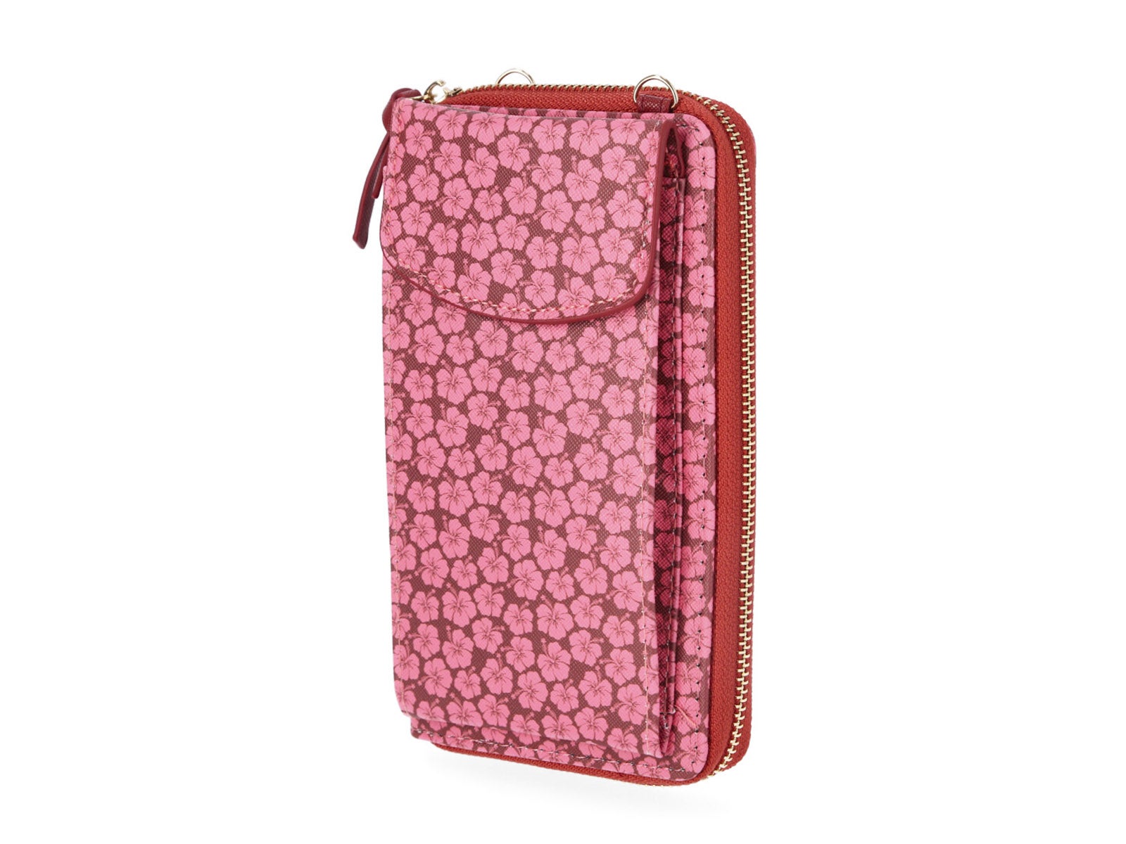 A bolsa para telemóvel vertical estampada com flores vermelhas é o teu aliado perfeito para combinar estilo e praticidade num só acessório. Com o seu design encantador e alegre, esta bolsa da ALE-HOP torna-se o complemento ideal para levar apenas o essencial. Perfeito para aqueles dias em que menos é mais!