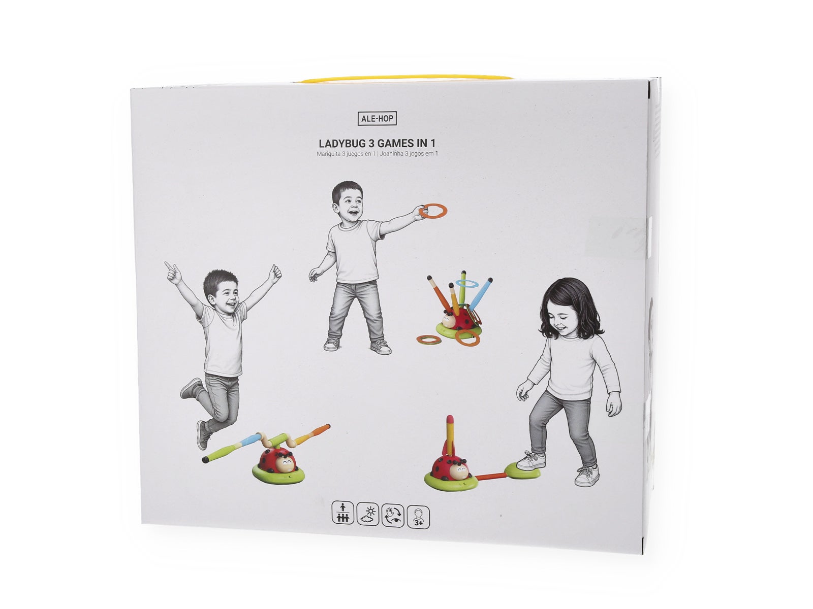Multiplica a diversão com o Brinquedo de exterior joaninha 3 em 1 da ALE-HOP! Um conjunto de pontaria colorido e versátil, perfeito para brincar no jardim e melhorar a coordenação dos mais pequenos.