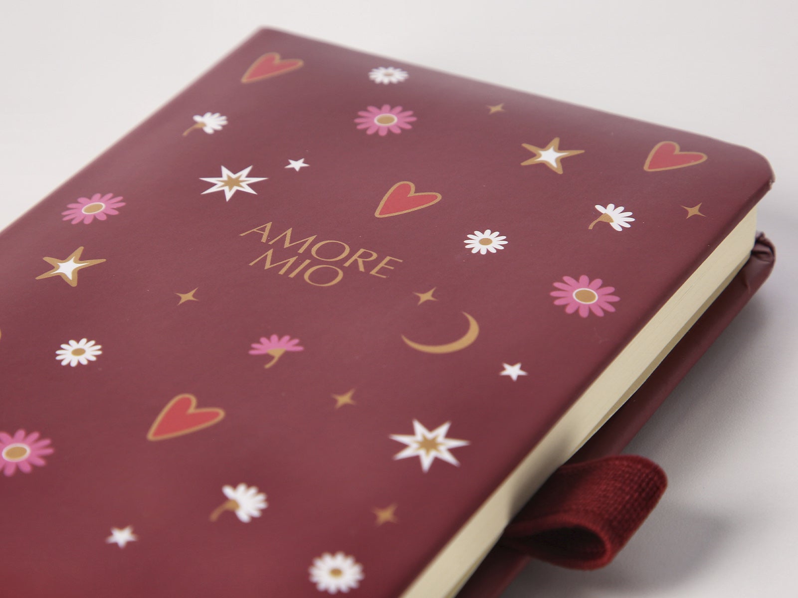 O caderno a6 amore mio é aquele detalhe charmoso que transforma qualquer anotação num momento único, seja para estudar, organizar-te ou simplesmente deixar a imaginação voar.