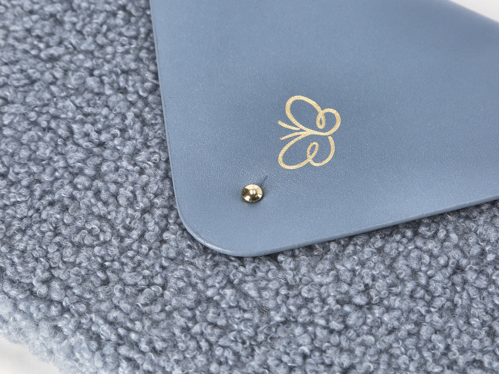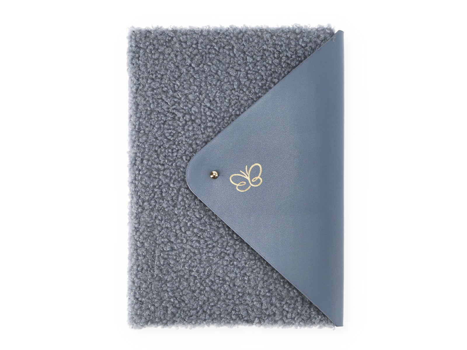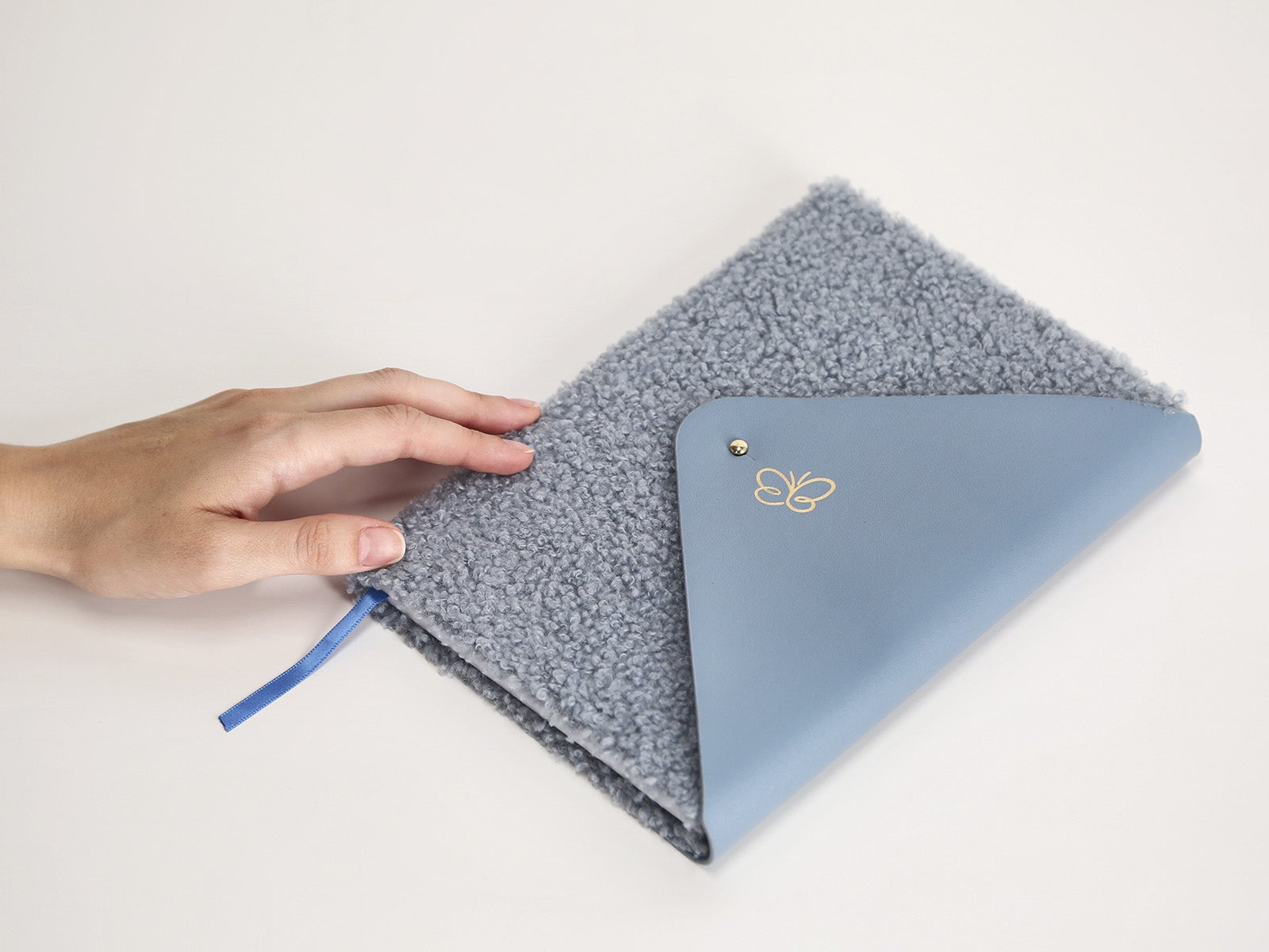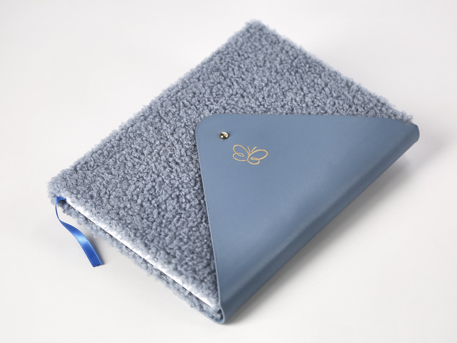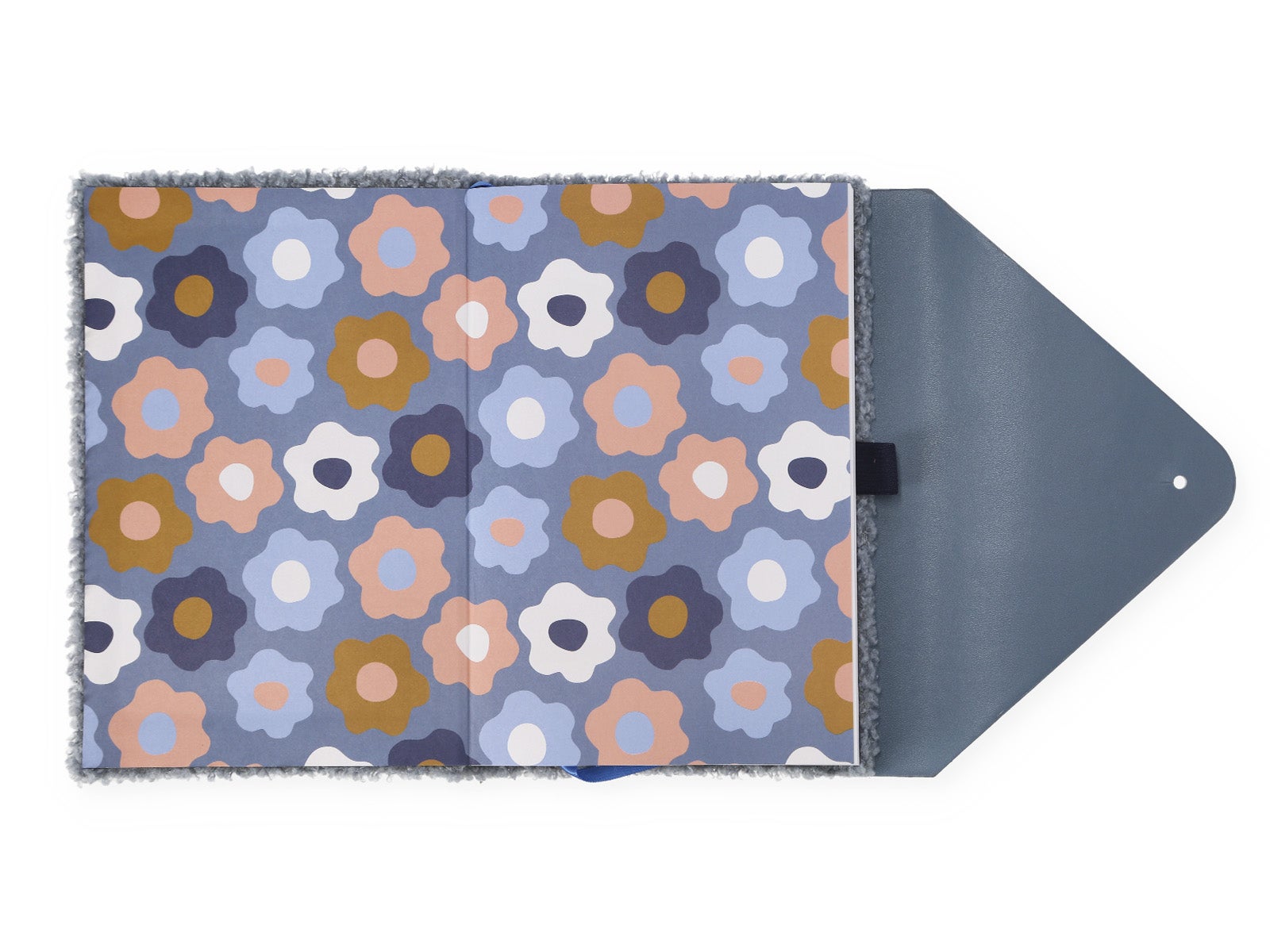 Caderno com fecho azul empolado
