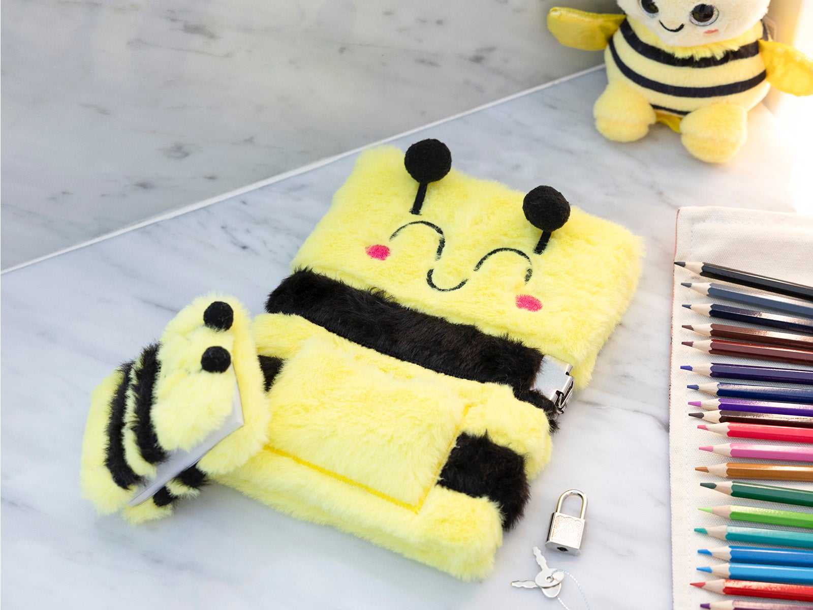 Caderno peludo duplo com cadeado A5 – Abelha